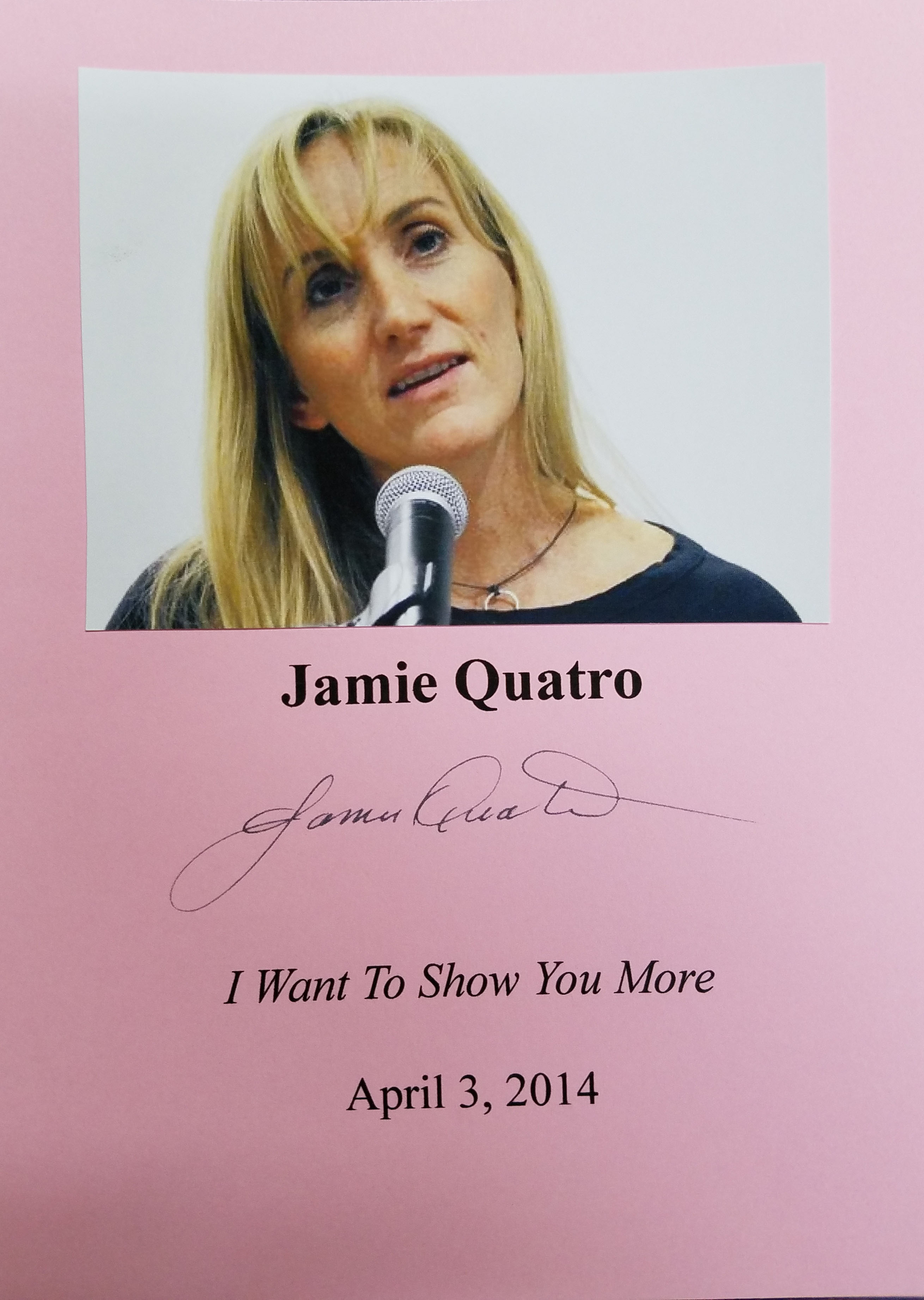 JAMIE QUATRO (pictured below from our Wall of Fame) is a visiting professor at Sewanee, The University of the South. Her debut collection of connected stories was named by NPR as Book of the Year. Thank you Jamie Quatro for signing our books.