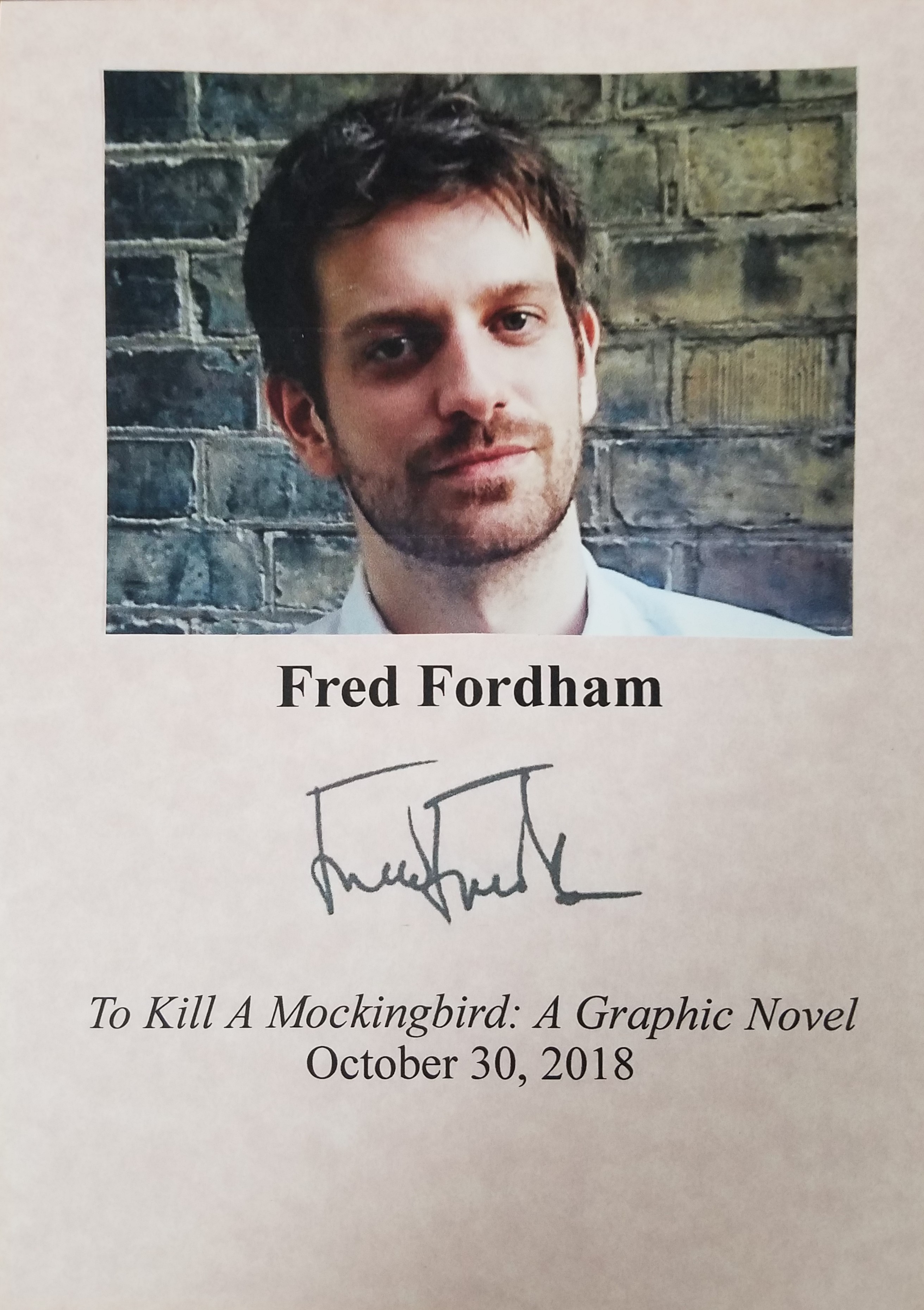 FRED FORDHAM (shown below from our Wall of Fame) is a writer and illustrator whose work includes illustrating Phillip Pullman's first graphic novel. Thank you Fred Fordham for signing our books.