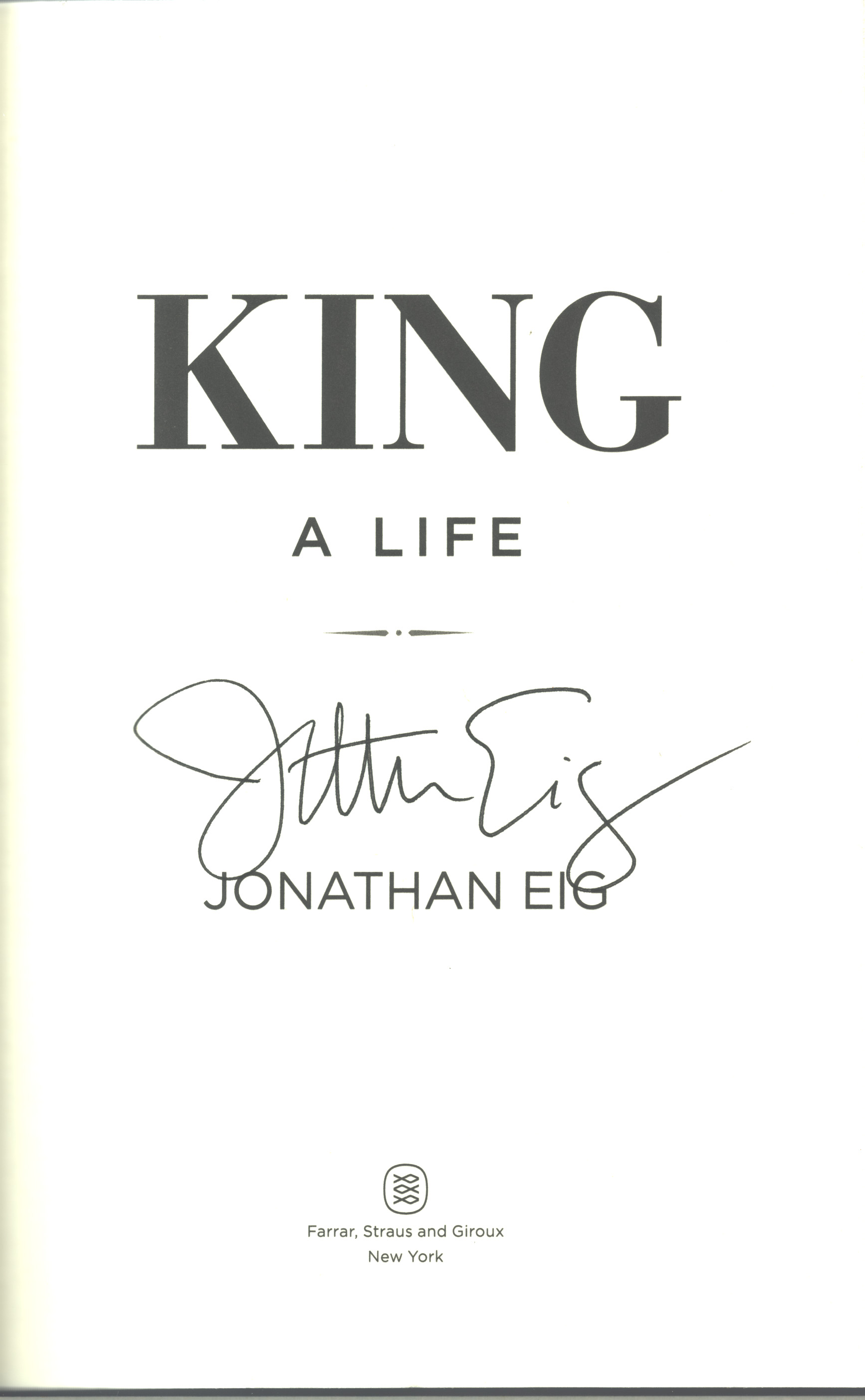THIS COPY was hand signed by Jonathan Eig on the title page at our event in Birmingham sponsored by NPR. A printout of the details are printed out and placed in this copy. It is a new, unread first edition/first printing hardback opened only for signing and comes with a certificate authenticating the signature. **IMPORTANT NOTE** THE PUBLISHER USED A FRAGILE GRAY BINDING THAT CAUSED SMALL TEARS AT THE HEAD AND FOOT OF THE SPINE WHEN SHIPPED. WITHOUT EXCEPTION, EVERY COPY HAS SLIGHT DAMAGE. THE JACKET IS PERFECT AND UNLESS REMOVED, OF COURSE THE BOOK APPEARS FINE. BECAUSE OF THE FLAW, WE ARE PRICING THESE TREASURES WELL BELOW MARKET!! Published in May, 2023 by Farrar, Strauss and Giroux, an imprint of Macmillan Publishers.