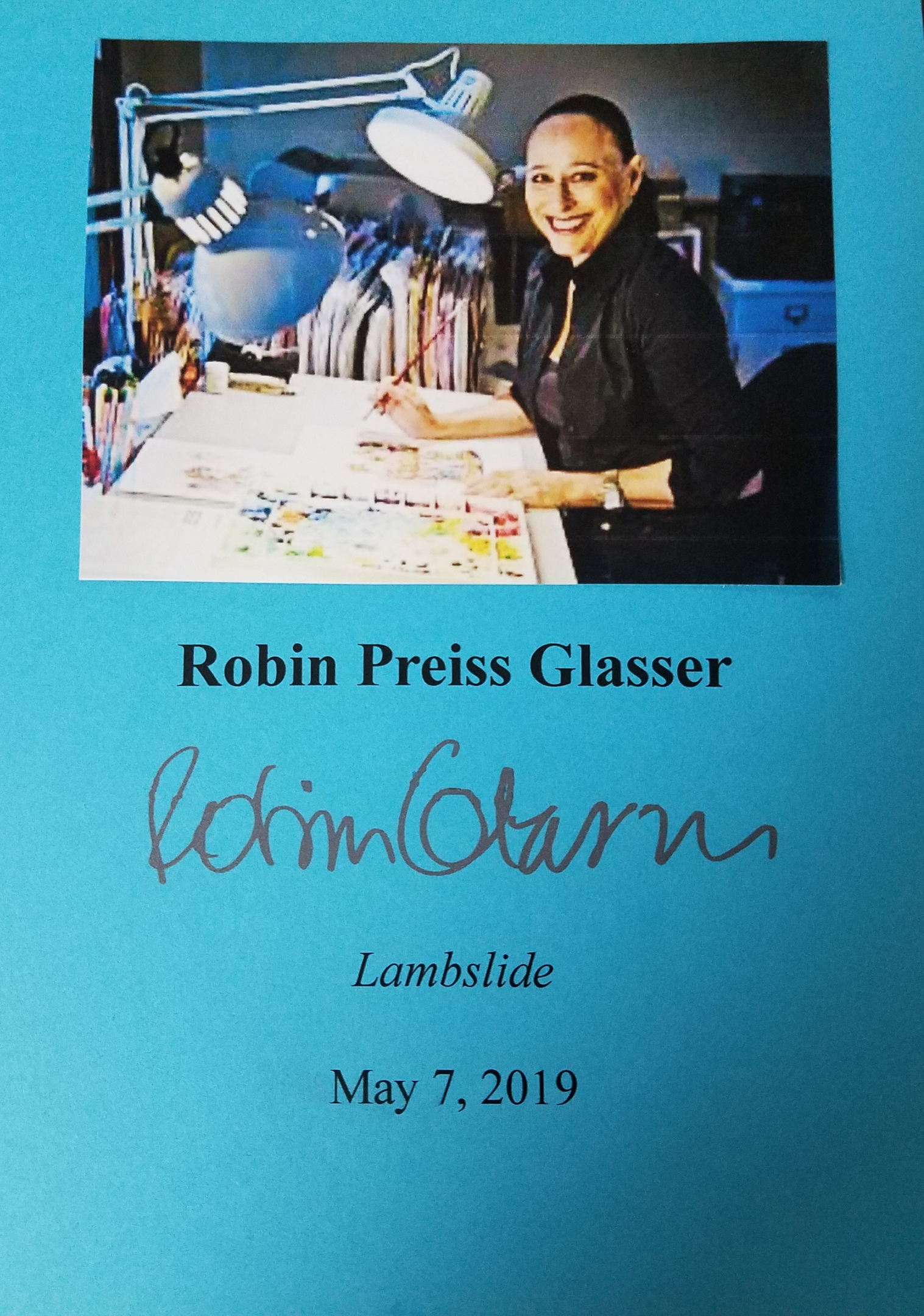 ROBIN PREISS GLASSER (pictured below from our Wall of Fame) is a world-renowned illustrator who has worked with numerous authors, including Garrison Keillor, Sarah Ferguson, Duchess of York, Lynne Cheney, and many others. Her Fancy Nancy book series was adapted into a successful television show by Disney in 2018. Thank you Robin Preiss Glasser for signing our books.