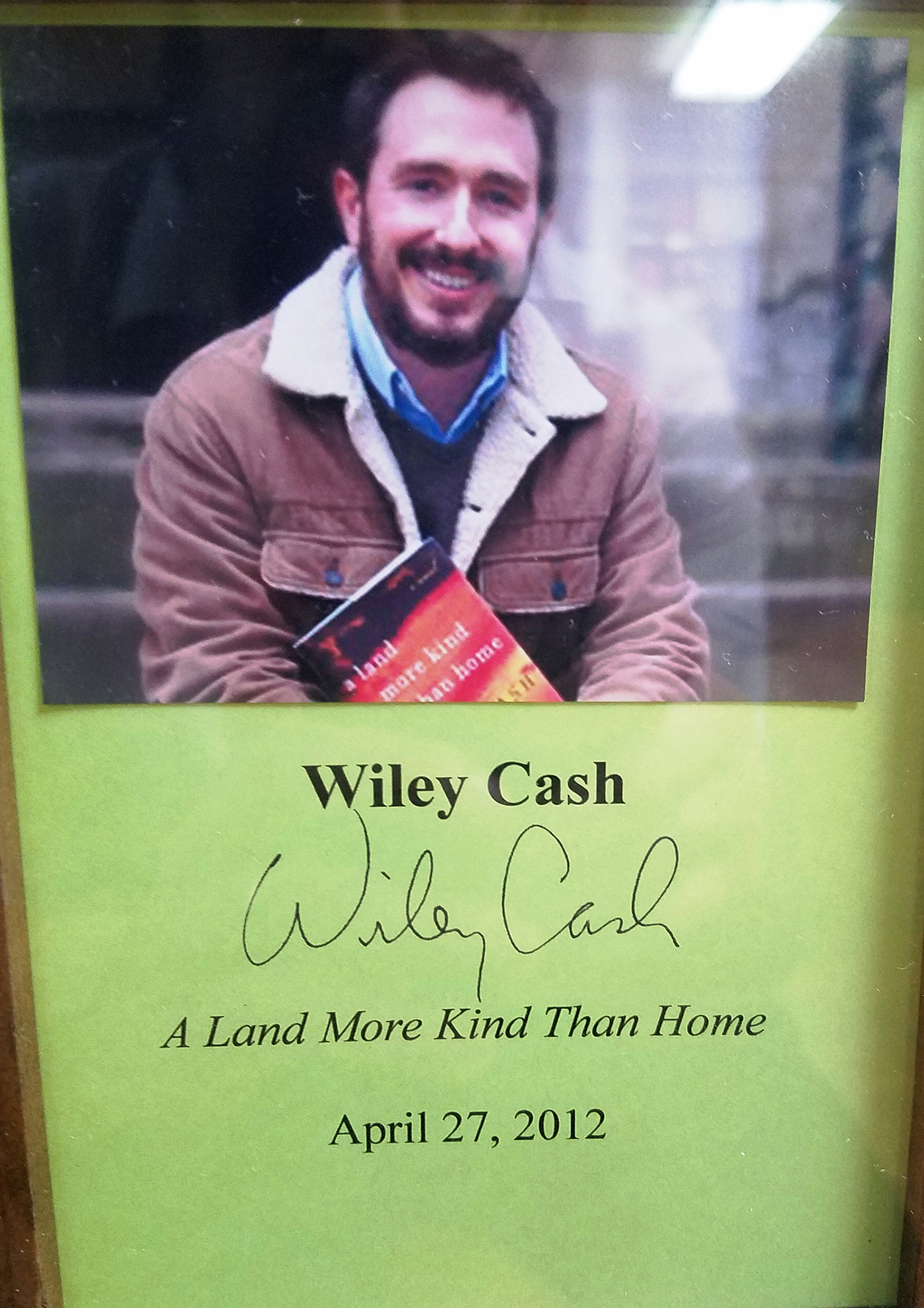 WILEY CASH (pictured below from our Wall of Fame) is considered one of the South's finest young writers from whom we expect many more great works. He is already a New York Times  best seller. Thank you Wiley Cash for signing our copies.