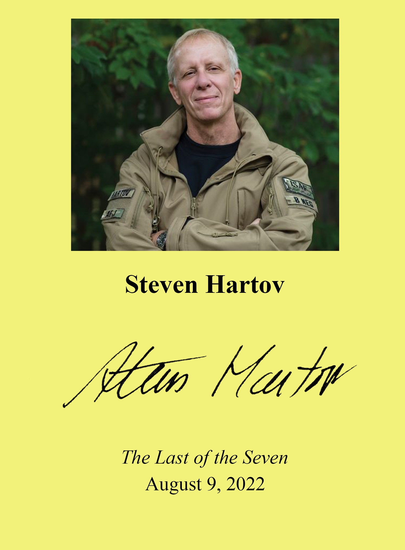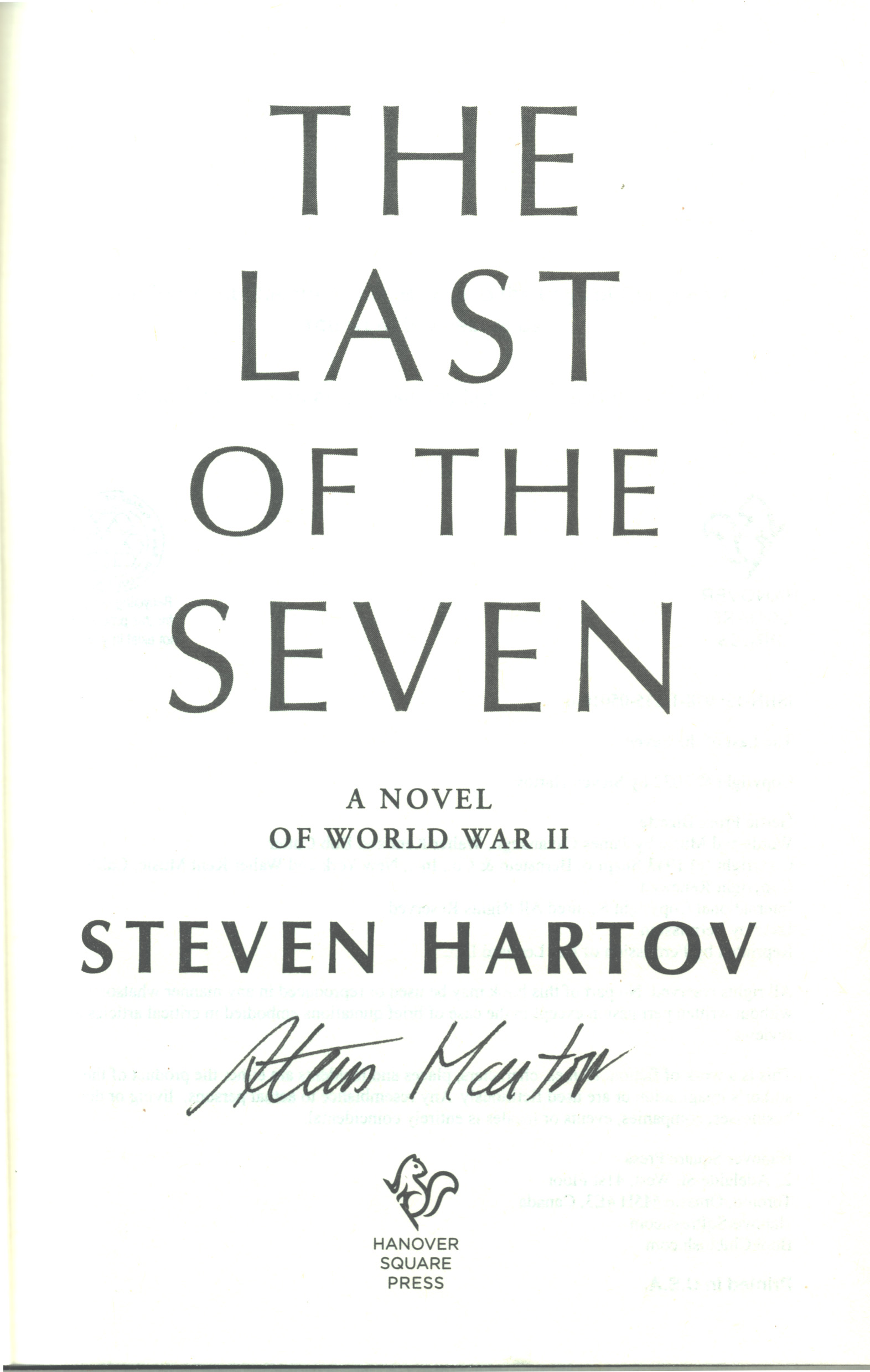 THIS COPY (shown below) was hand signed by Steven Hartov on the title page at his home. It is a new, unread first edition opened only for signing and comes with a certificate authenticating the signature. Published in August, 2022 by Hanover Square Press, an imprint of Harpercollins Publishers.