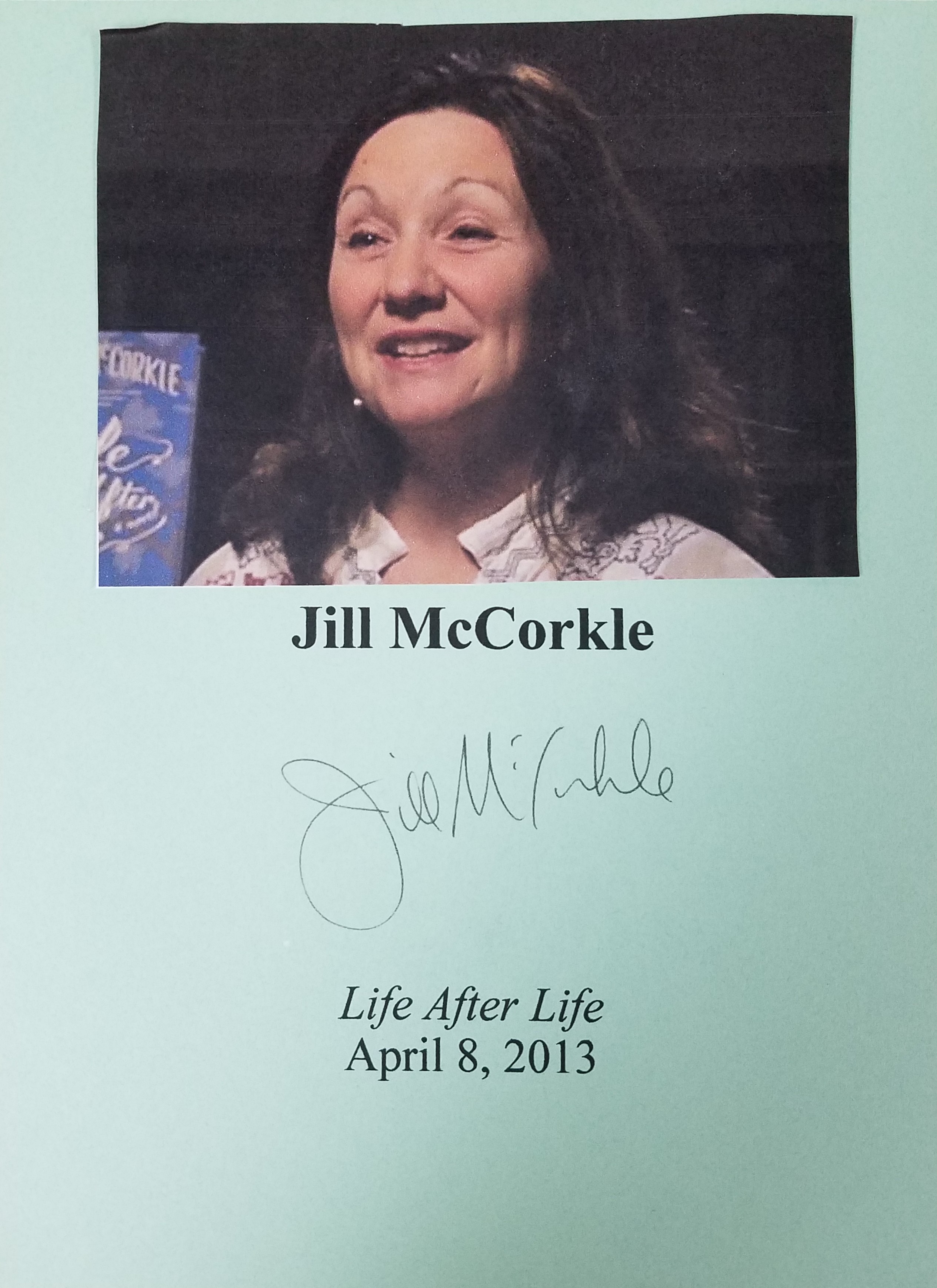 JILL MCCORKLE (pictured below from our Wall of Fame) has won many writing awards and teaches Creative Writing at North Carolina State University. Thank you Jill McCorkle for signing our books.