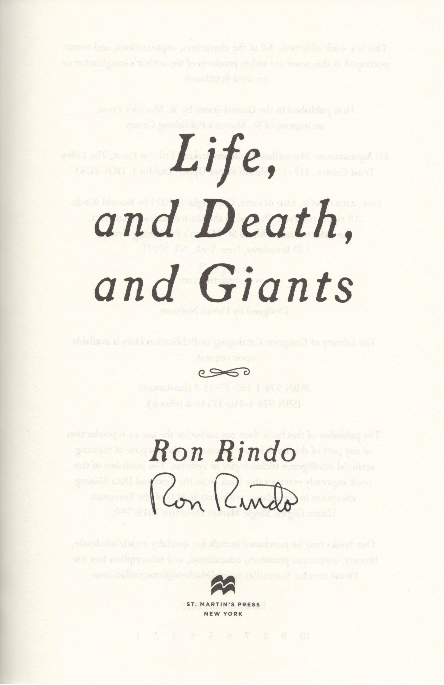 THIS COPY was hand signed by Ron Rindo on the title page. It is a new, unread first edition hardback opened only for signing and comes with a certificate authenticating the signature. Published in September, 2025 by St. Martin's Press, an imprint of Macmillan Publishers.