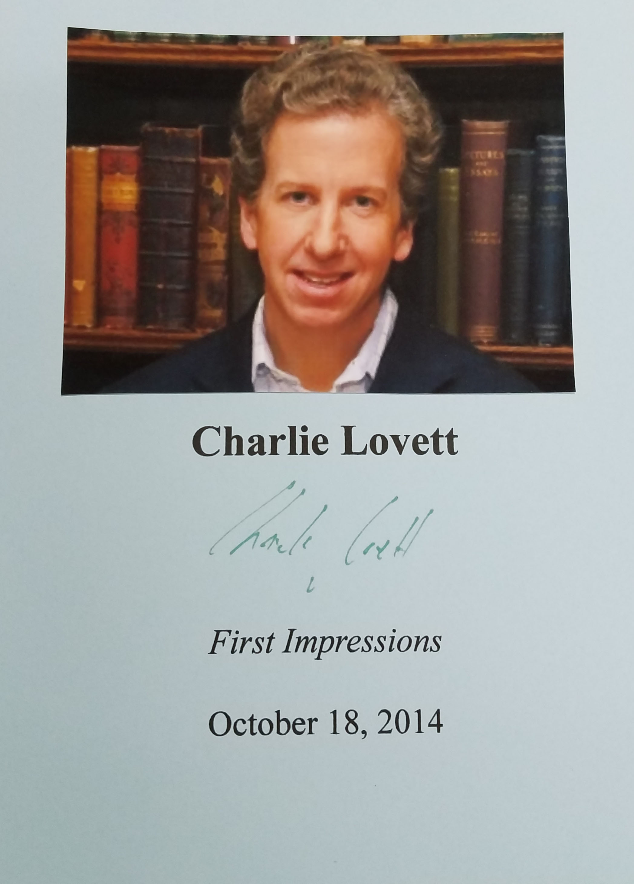 CHARLIE LOVETT (pictured below from our Wall of Fame) is a former antiquarian bookseller, a playwright, and a member of our favorite group of people on earth whom we refer to in a most respectful manner - a sicko book collector. His books about books capture the hearts and minds of these aforementioned sickos. Thank you Charlie Lovett for signing our books.