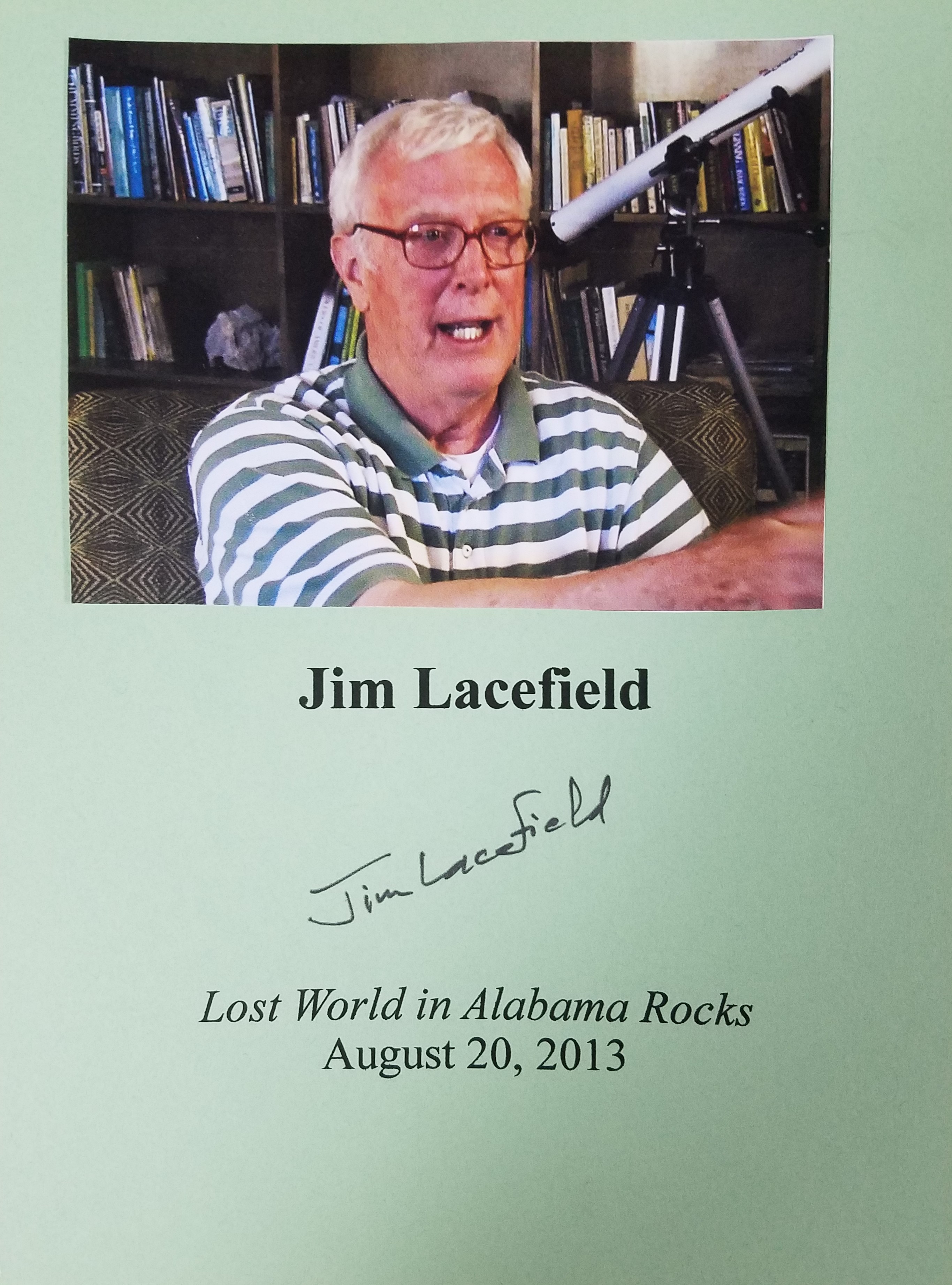 JIM LACEFIELD (shown below from our Wall of Fame) is a retired adjunct professor of biology at the University of North Alabama. Thank you Jim Lacefield for signing our books.