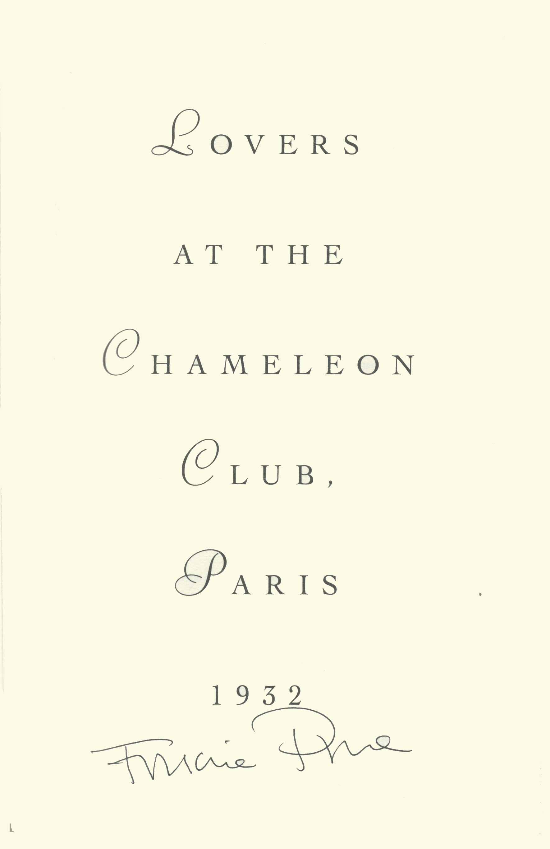 LOVERS AT THE CHAMELEON CLUB, PARIS 1932 captures the "City of Light" at its height - in the Roaring Twenties. Some of literature's most interesting characters congregate at the Chameleon Club - including a cross-dressing lesbian athlete, a young photographer and a socialite art patron. Each voice is spoken with exuberance, strength, humor and intimacy.