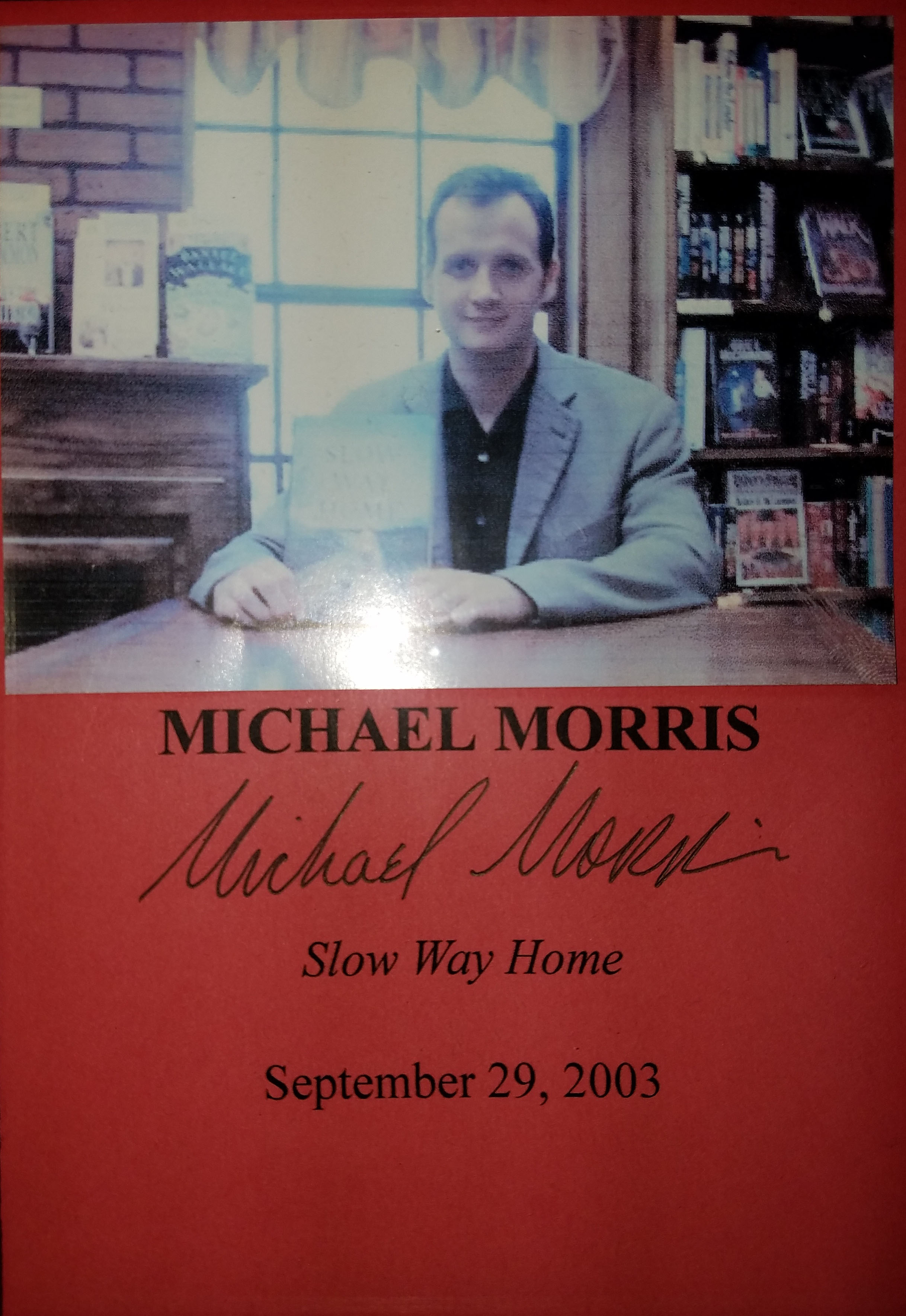 MICHAEL MORRIS (pictured below from our Wall of Fame) is a homeboy whose books have been Booksmith mainstays for more than a decade. Thank you Michael Morris for signing our books.