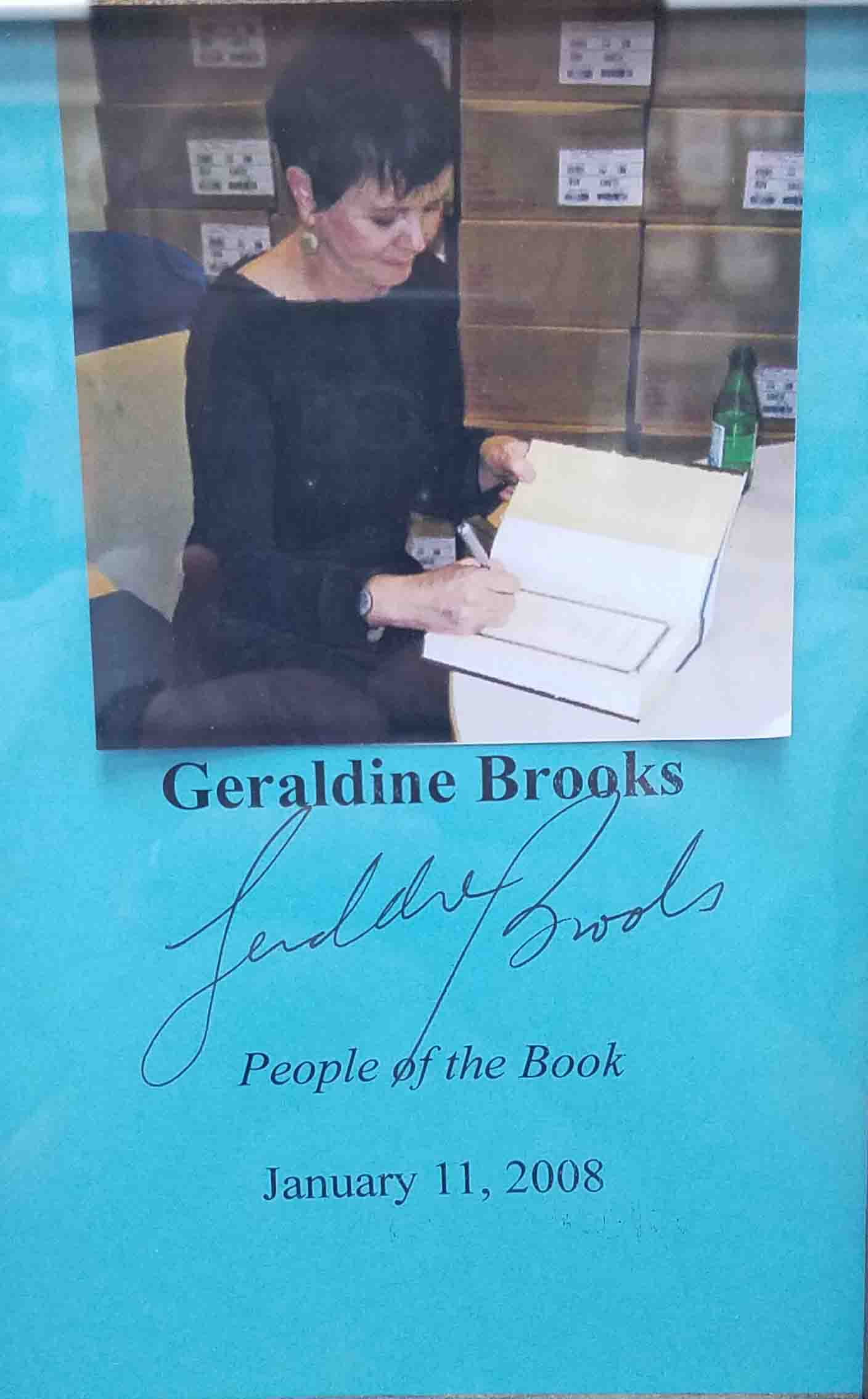 GERALDINE BROOKS (Shown below on our Wall of Fame) is a Pulitzer Prize winner whose works of fiction and non-fiction have been translated into twenty-five languages and have sold millions of copies.Thank you Geraldine Brooks for signing our books.