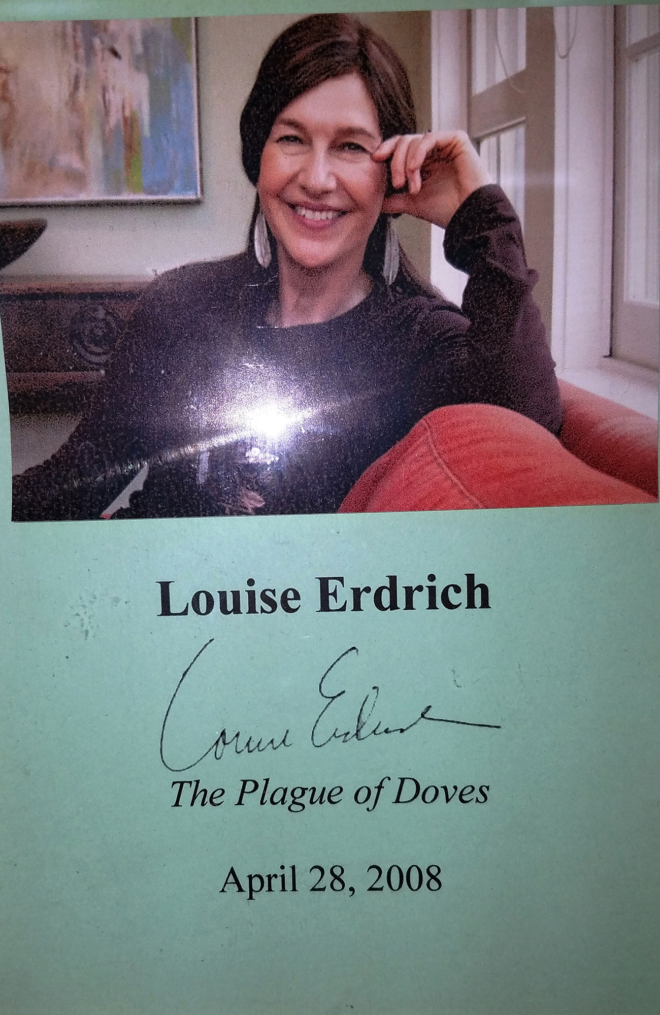 LOUISE ERDRICH (pictured below from our Wall of Fame) is the author of over a dozen novels, including Night Watchman, winner of the Pulitzer Prize, The Round House, National Book Award winner and LaRose, which won the National Book Critics Circle Award for fiction. Thank you Louise Erdrich for signing our books.