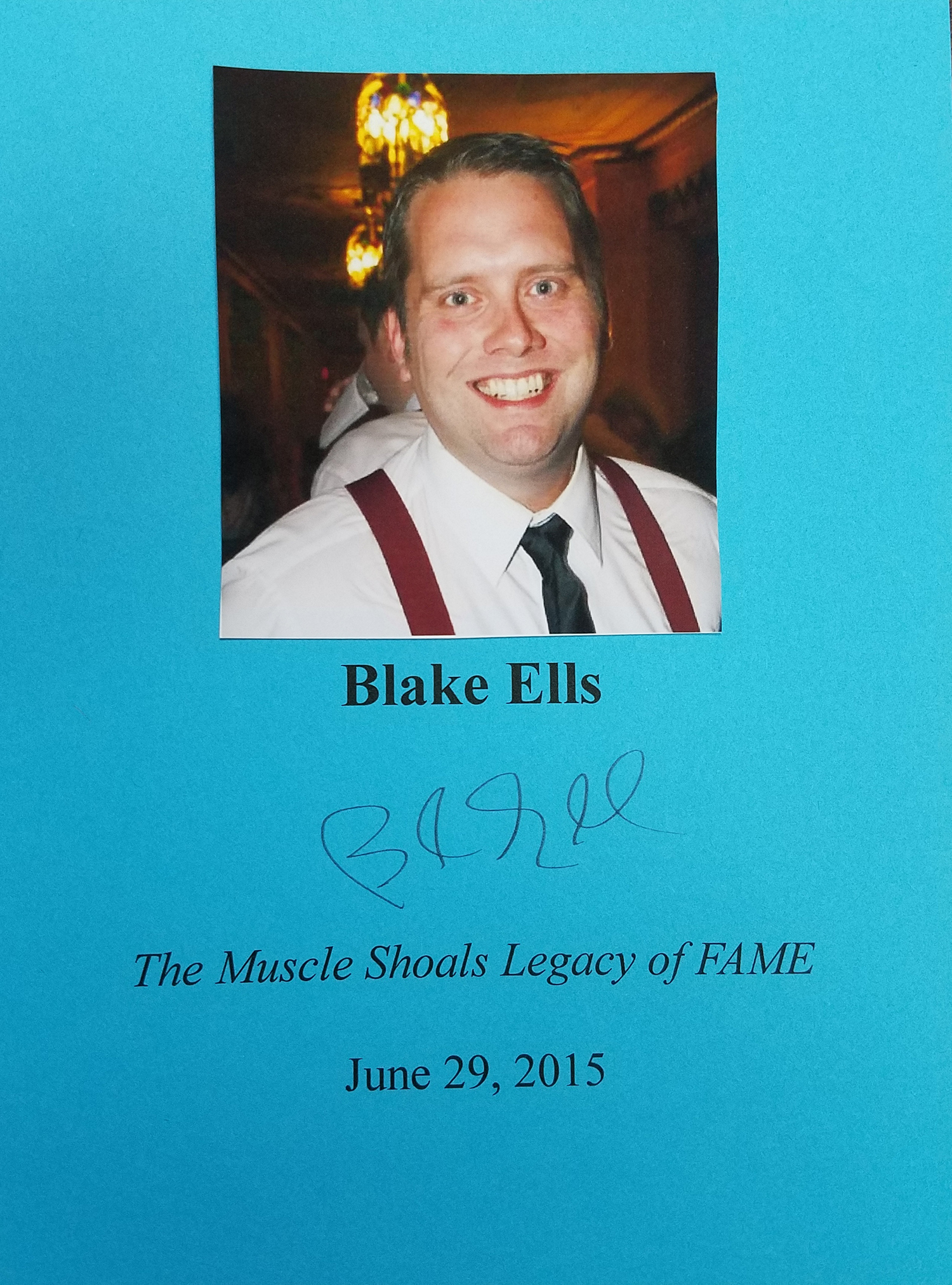 BLAKE ELLS (pictured below from our Wall of Fame) is a homeboy journalist and public relations executive who has great connections with the region's music scene and performers. The Muscle Shoals Legacy of FAME is his first book. Thank you Blake Ells for signing our books.