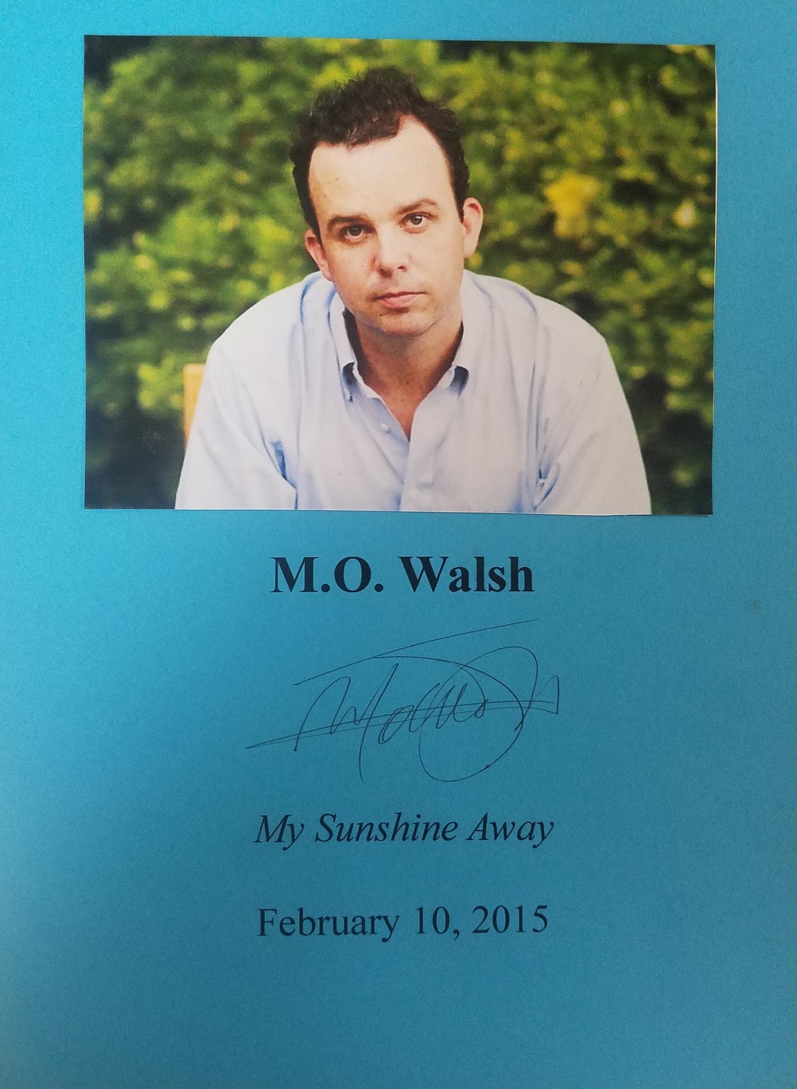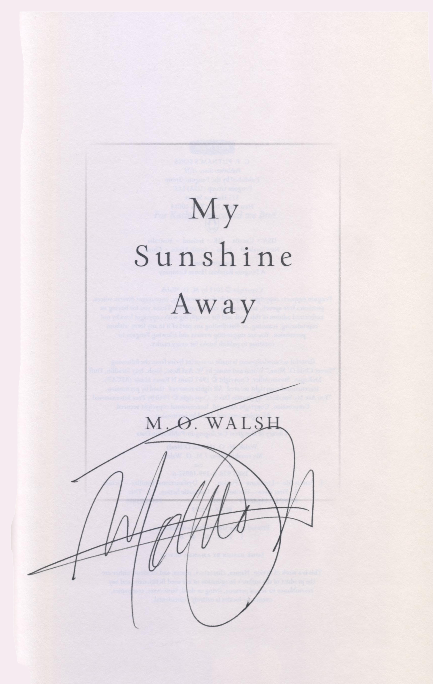 THIS COPY (shown below) was hand signed on the title page by M.O. Walsh at the store. It is a new, unread hardback opened only for signing and comes with a certificate authenticating the signature. Published in February, 2015 by Putnam, an imprint of Penguin Random House.