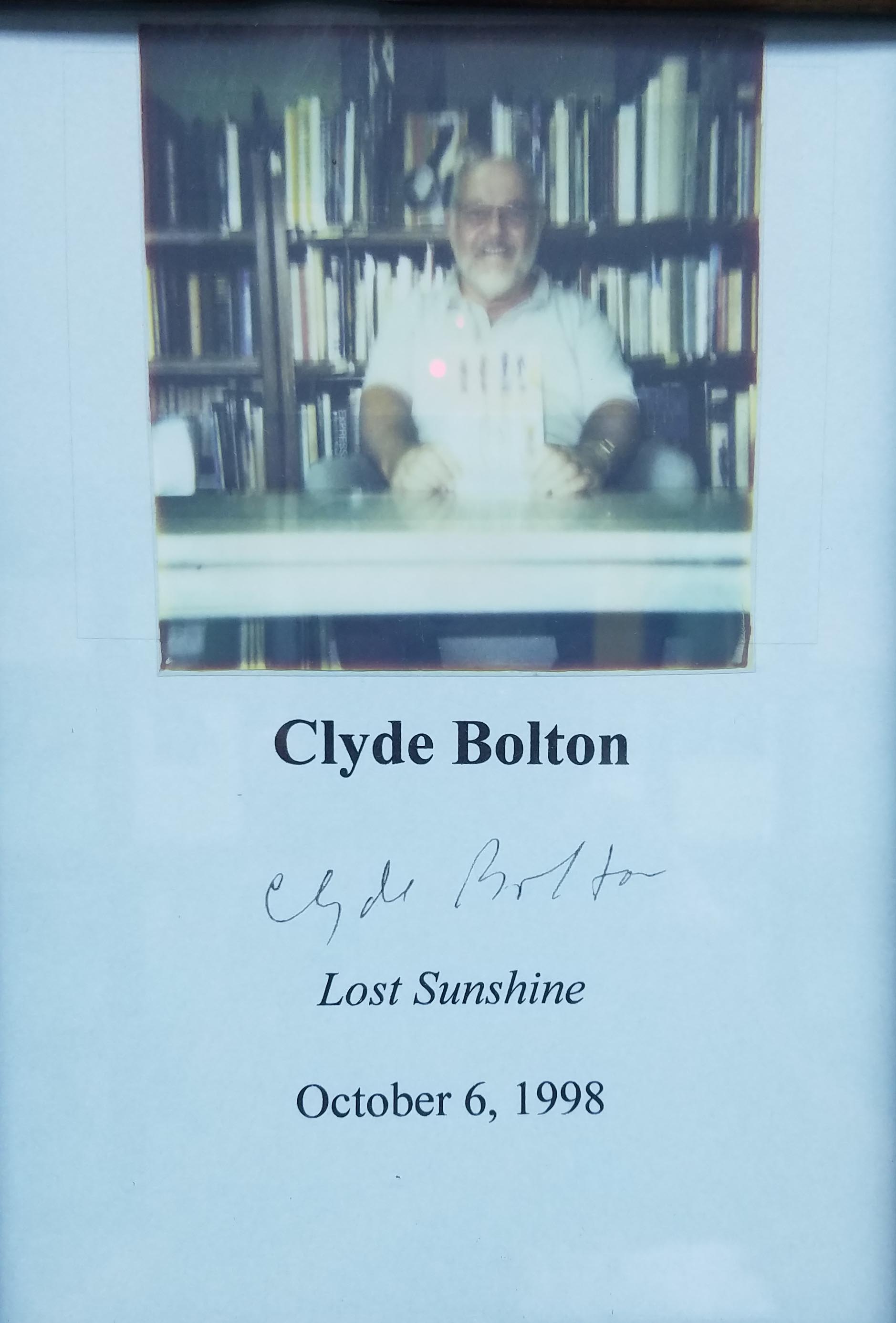 CLYDE BOLTON (pictured below from our Wall of Fame) was one of the South's best known sportswriters for more than four decades. He has written twenty books, all in his attic office on his 1950s Underwood. Thank you Clyde Bolton for signing our books.