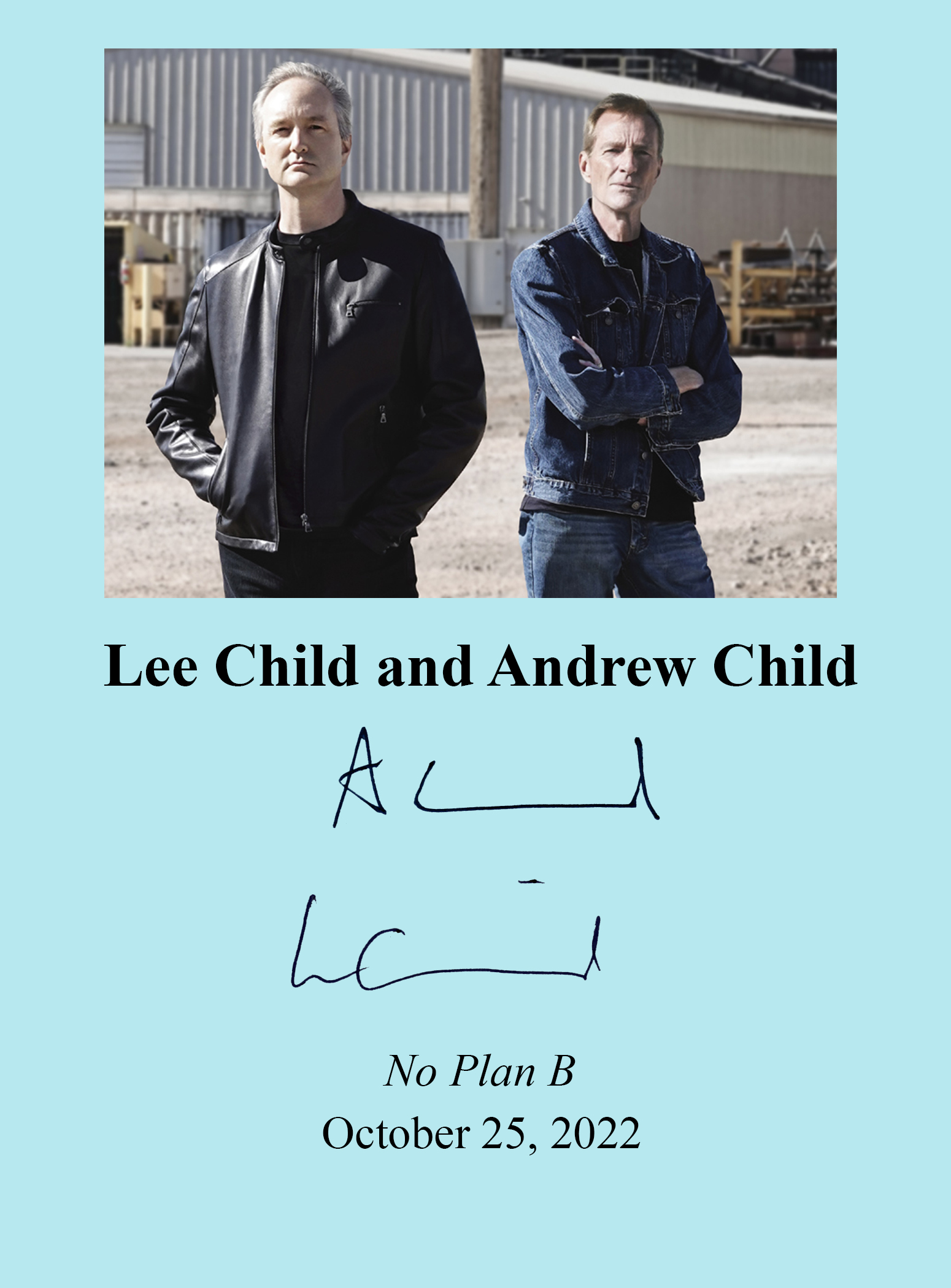 THIS COPY (shown below) was hand signed both by Lee Child and Andrew Child on a page that was bound into the book. It is a new, unread, unopened first edition and comes with a certificate authenticating the signature. Published in October, 2022 by Delacorte, an imprint of Penguin Random House.