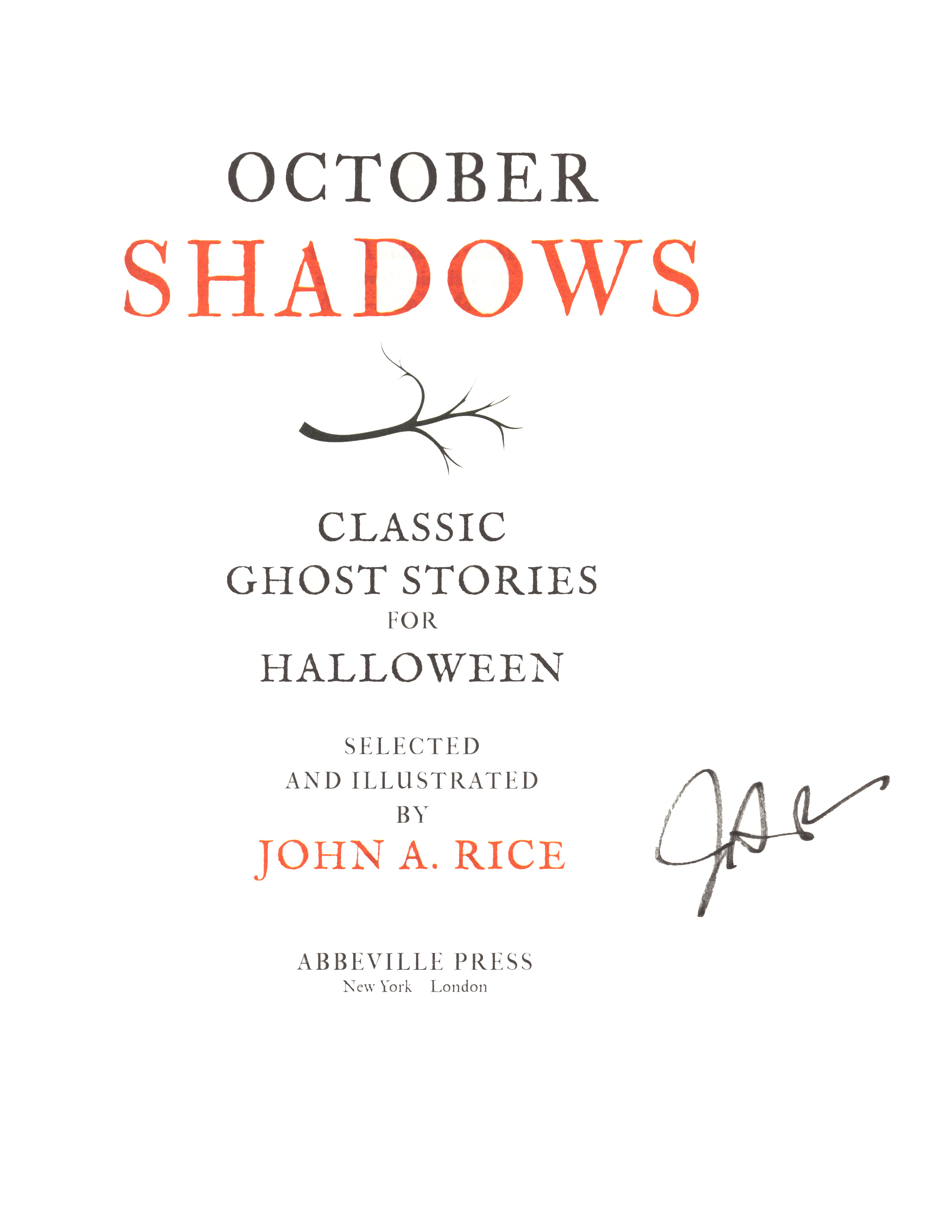 OCTOBER SHADOWS is a collection of classic stories from Washing Irving ,Edgar Allan Poe, Ambrose Bierce, and many other of the scariest writers who ever lived. John A. Rice has beautifully illustrated the season's most outstanding classic and an unforgettable gift.