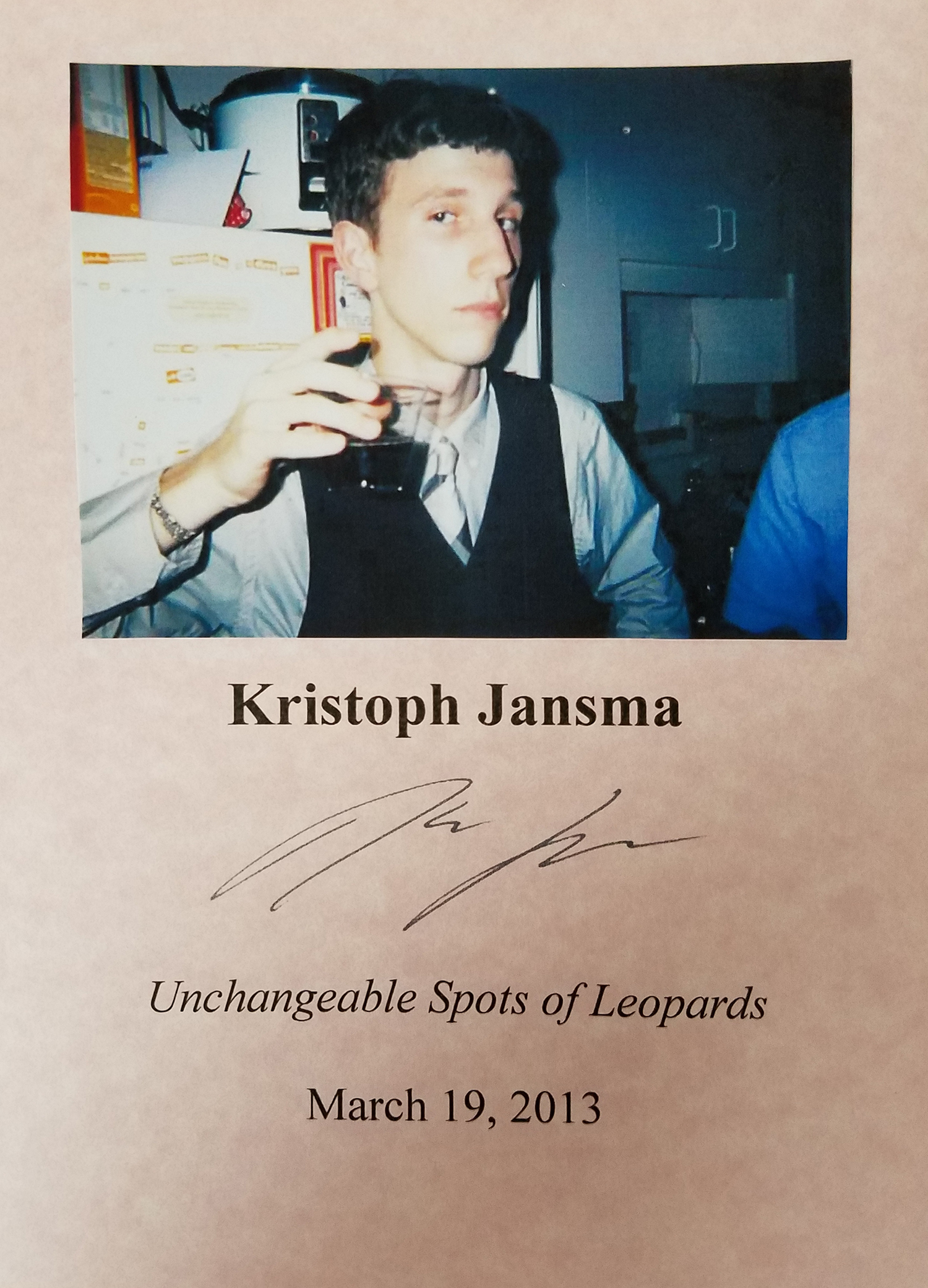 KRISTOPHER JANSMA (Pictured on our Wall of Fame) is a best selling author of five books.Thank you Kristopher Jansma for signing our books.