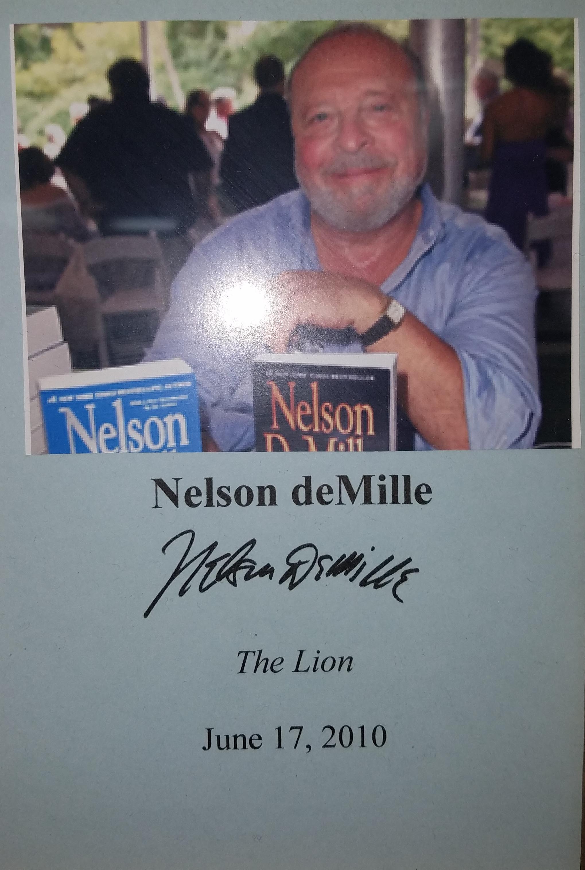 NELSON DEMILLE (pictured below from our Wall of Fame) is a #1 New York Times best seller and was named Thriller Writer of the Year by his peers. Several of his books have been adapted for the big screen. He holds three honorary doctorate degrees and is a Mensa member. On a personal note, we had the privilege of introducing him at a couple of book conferences and spent an afternoon walking the streets of Mobile, Alabama with this entertaining gentleman. Thank you Nelson DeMille for signing our books.R.I.P.