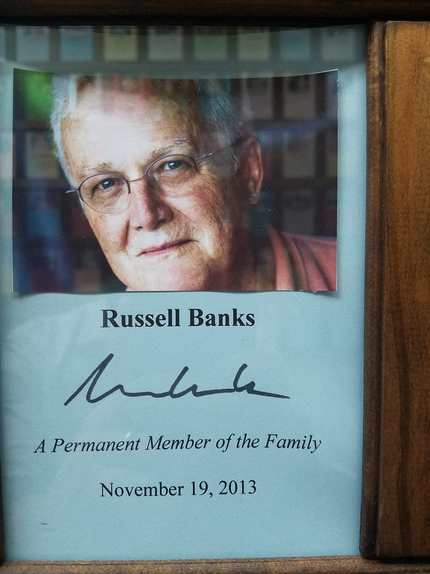 RUSSELL BANKS (pictured below from our Wall of Fame) is a fellow of the American Academy of Arts and Sciences and one of the most respected literary authors on today's writing scene. Thank you Russell Banks for signing our books and R.I.P.