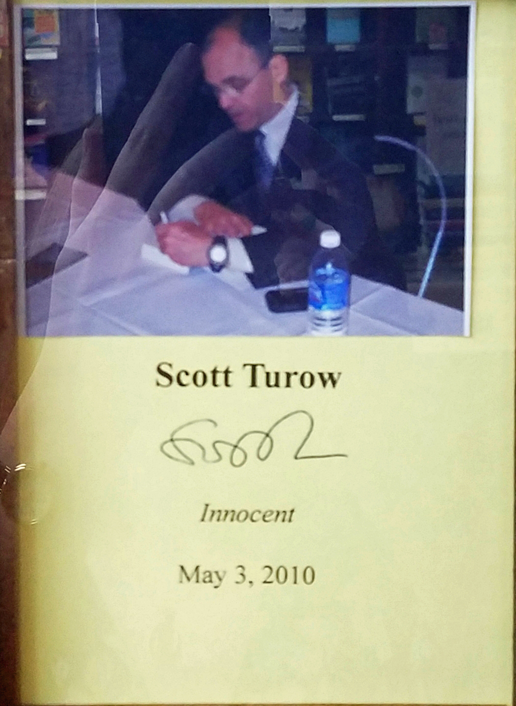 SCOTT TUROW (pictured below on our Wall of Fame) redefined the legal thriller. He has written 15 best sellers, translated into more than 40 languages, with more than 30 million copies sold. Thank you Scott Turow for signing our books.