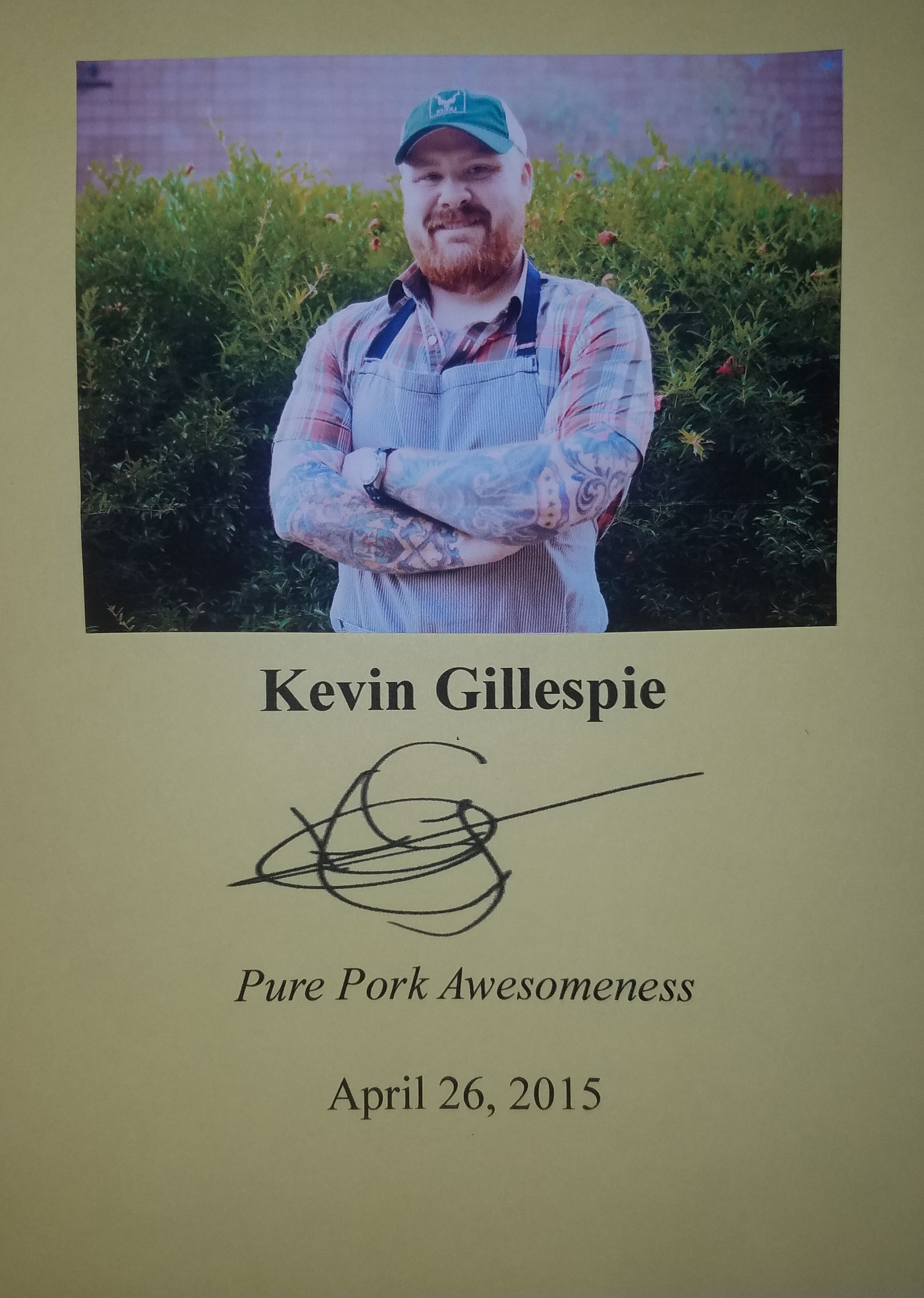 KEVIN GILLESPIE (pictured below from our Wall of Fame) is one of the South's best known chefs, and owner of the Red Beard group of restaurants in the Atlanta area. Thank you Kevin Gillespie for signing our books.