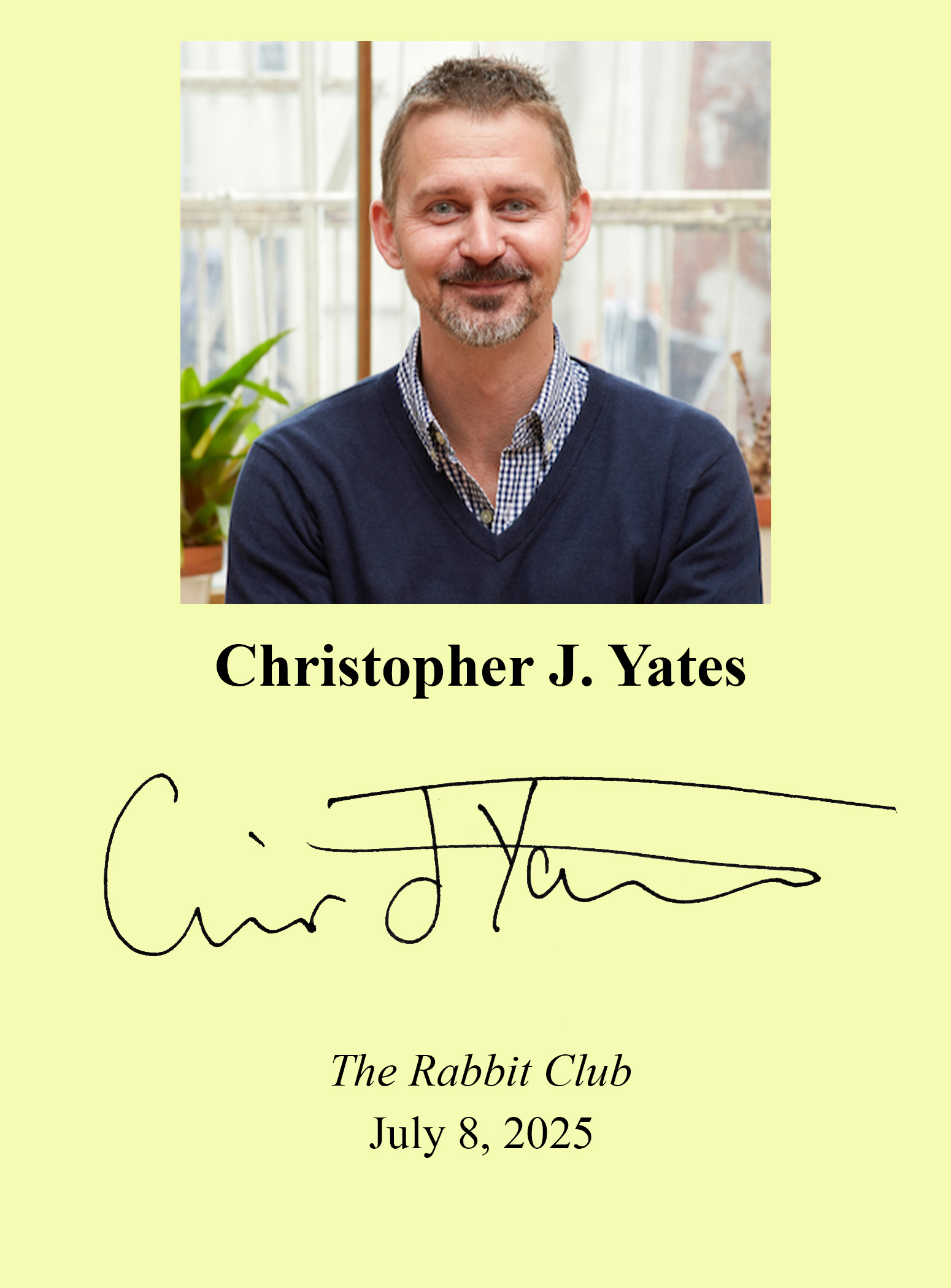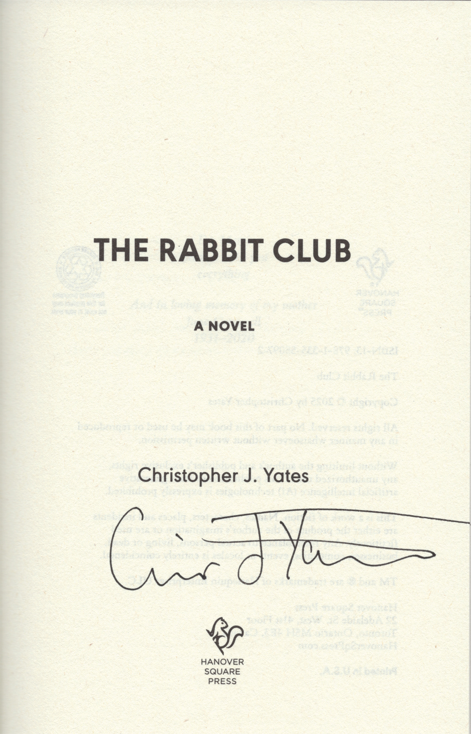THIS COPY (shown below) was hand signed by Christopher Yates on the title page. It is a new, unread, hardback opened only for signing and comes with a certificate authenticating the signature. Published in July, 2025 by Hanover Square Press, an imprint of Harpercollins Publishers.