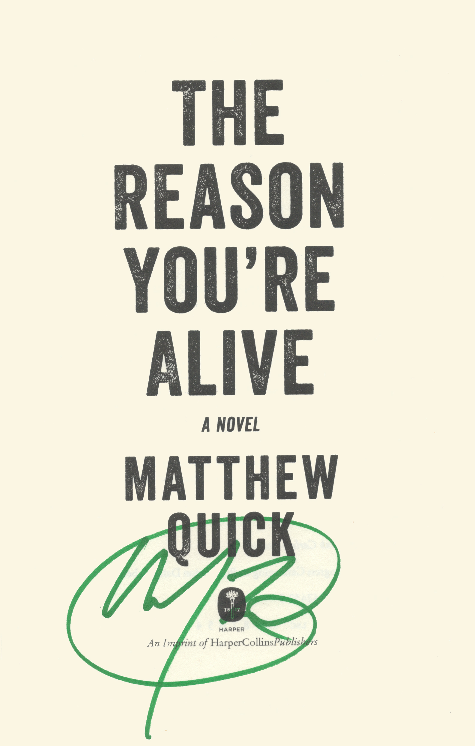 THIS COPY (shown below) was hand signed on the title page by Matthew Quick at his home. It is a new, unread first edition opened only for signing and comes with a certificate authenticating the signature. Published in July, 2017 by Harper, an imprint of HarperCollins.