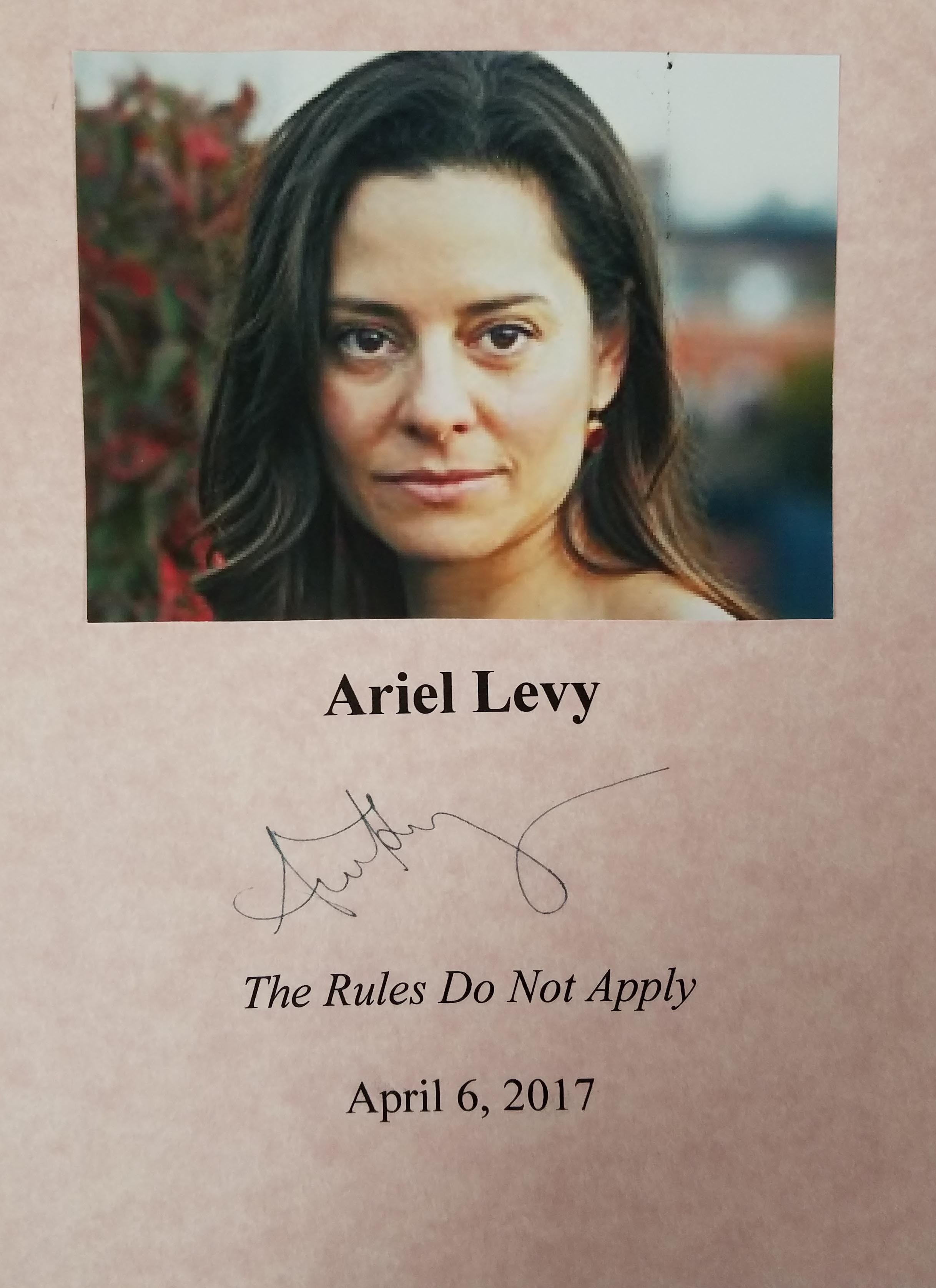 ARIEL LEVY (pictured below from our Wall of Fame) won the National Magazine Award for Essays and Criticism in 2014.  Prior to penning her own memoir, she profiled many national and international personalities for The New Yorker. Thank you Ariel Levy for signing our books.