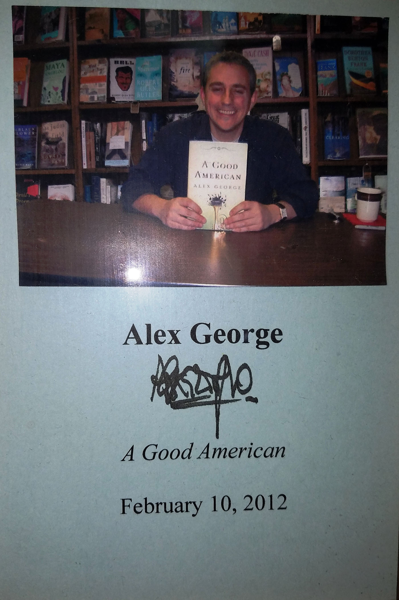 ALEX GEORGE (pictured below from our Wall of Fame) is a saxophone-playing amateur chef who was named one of England's top ten writers under forty. He is now a U.S. citizen and his first book published in this country, A Good American was named Book of the Year by The Library Journal and the American Booksellers Association. It's also one of our all-time favorites and when the American Booksellers Association had a nationwide contest for bookstores selling this title, The Alabama Booksmith finished number one. The author is following a trend and now owns a bookstore. Thank you Alex George for signing our books.