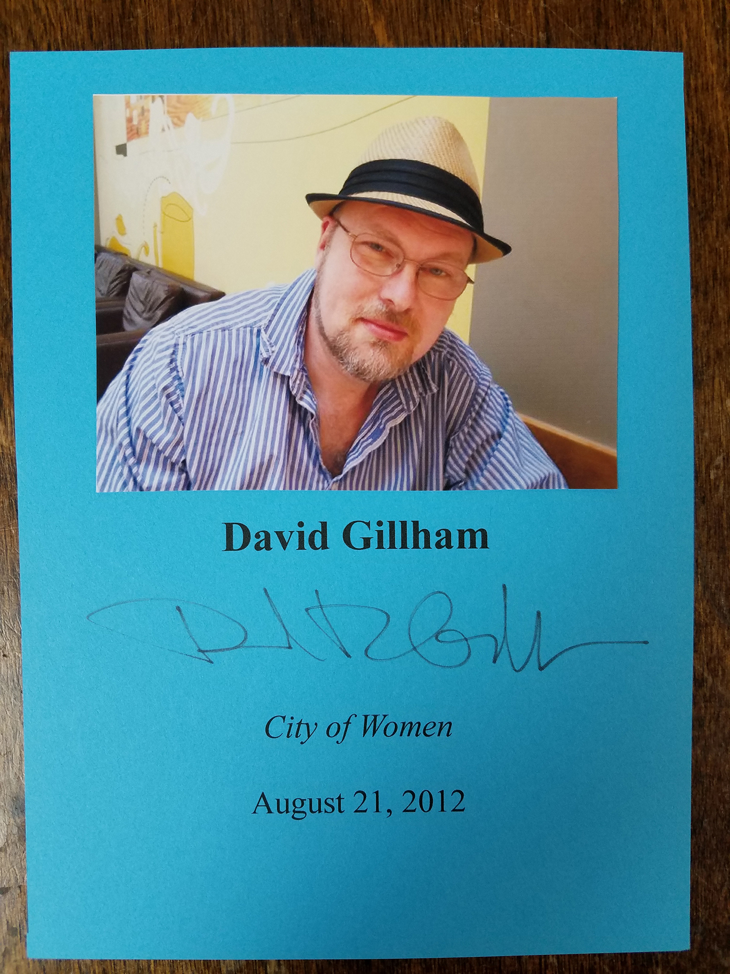 DAVID GILLHAM (pictured below from our Wall of Fame)  is a former screenwriter and the best-selling author of City of Women. Thank you David Gillham for signing our books.