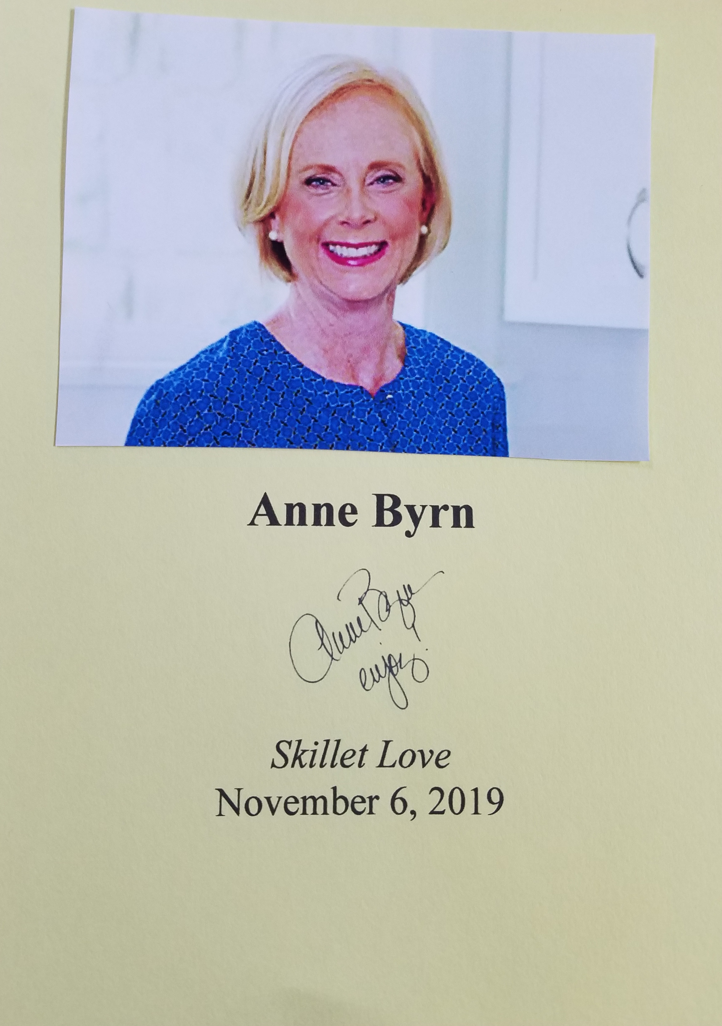 ANNE BYRN (pictured below from our Wall of Fame) is a bestselling food writer and author based in Nashville, Tennessee. She is a regular contributor to Food52, the Southern Kitchen, and the podcast, Stuff You Missed in History Class, and has been featured in People magazine, The Washington Post, The New York Times, Los Angeles Times, Southern Living, and many other publications. She has appeared on Good Morning America, Later Today, CNN, The Food Network and QVC and has taught cooking classes across the country. Thank you Anne Byrn for signing our books.