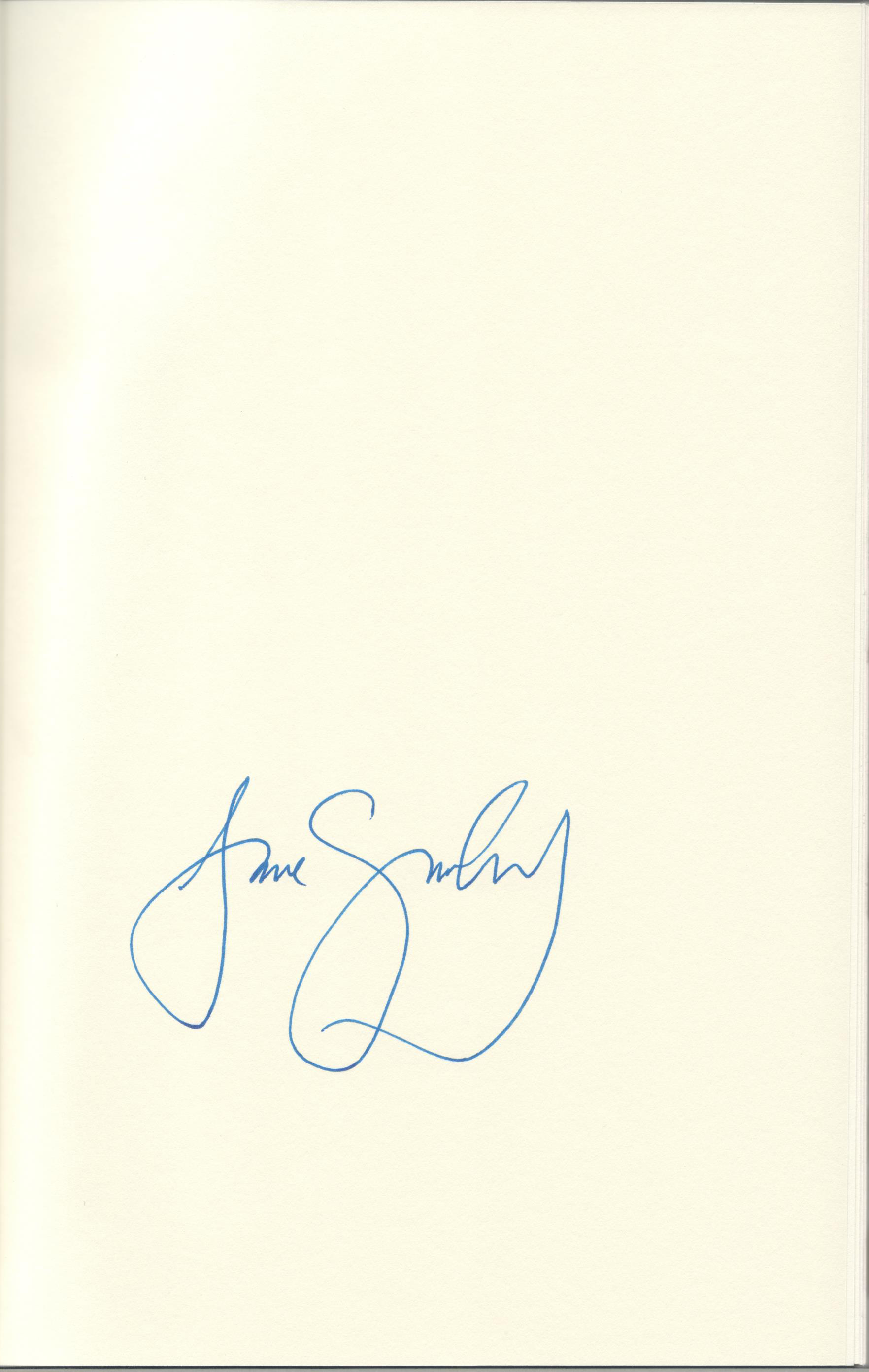 THIS COPY (shown below) was hand signed by Jane Smiley on a page that was bound into the book. It is a new, unread, unopened first edition and comes with a certificate authenticating the signature. Published in October, 2014 by Knopf, an imprint of Penguin Random House