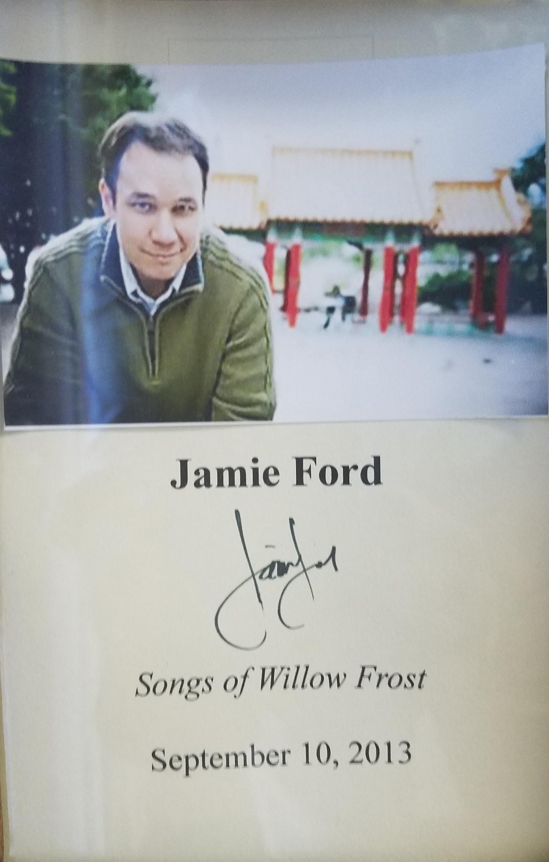 JAMIE FORD (pictured below from our Wall of Fame) scored a monster hit with his first book, Hotel on the Corner of Bitter and Sweet. It was named the #1 Book Club Book by the American Booksellers Association, and won the Adult Fiction Book of the Year Award, presented by the Asian/Pacific Association. This one debuted at #1 on the New York Times best seller list. Thank you Jamie Ford for signing our books.
