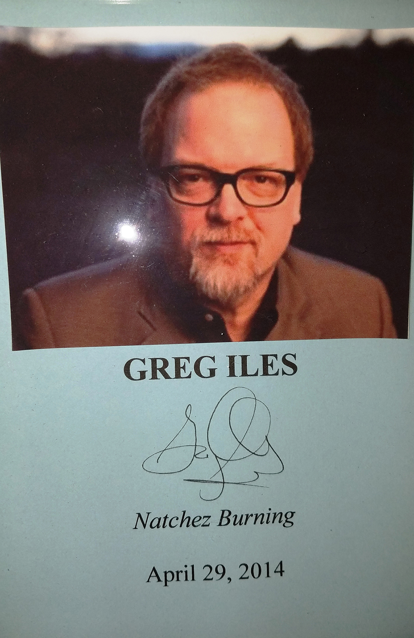 GREG ILES (pictured below from our Wall of Fame) is a New York Times #1 best-seller. His books have been translated into twenty languages and sold in more than thirty-five countries. He is also a talented musician, playing in the famous Rock Bottom Remainders group with Stephen King, James McBride, Roy Blount, Jr. and other icons of the writing world. Speculation is that at least some of his great gift of story-telling comes from living in the cabin where William Faulkner listened to tales told by his "Nanny", who was born a slave. Thank you Greg Iles for signing our books. R.I.P.