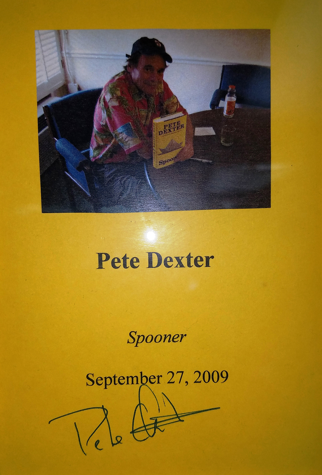PETE DEXTER (pictured below from our Wall of Fame) won the National Book Award after stints at writing columns for newspapers on both coasts. He also was an acclaimed playwright. He's come a long way since his first job - working at a post office in New Orleans. He admits he wasn't very good at handling mail, so he quit.Thank you Pete Dexter for signing our books.