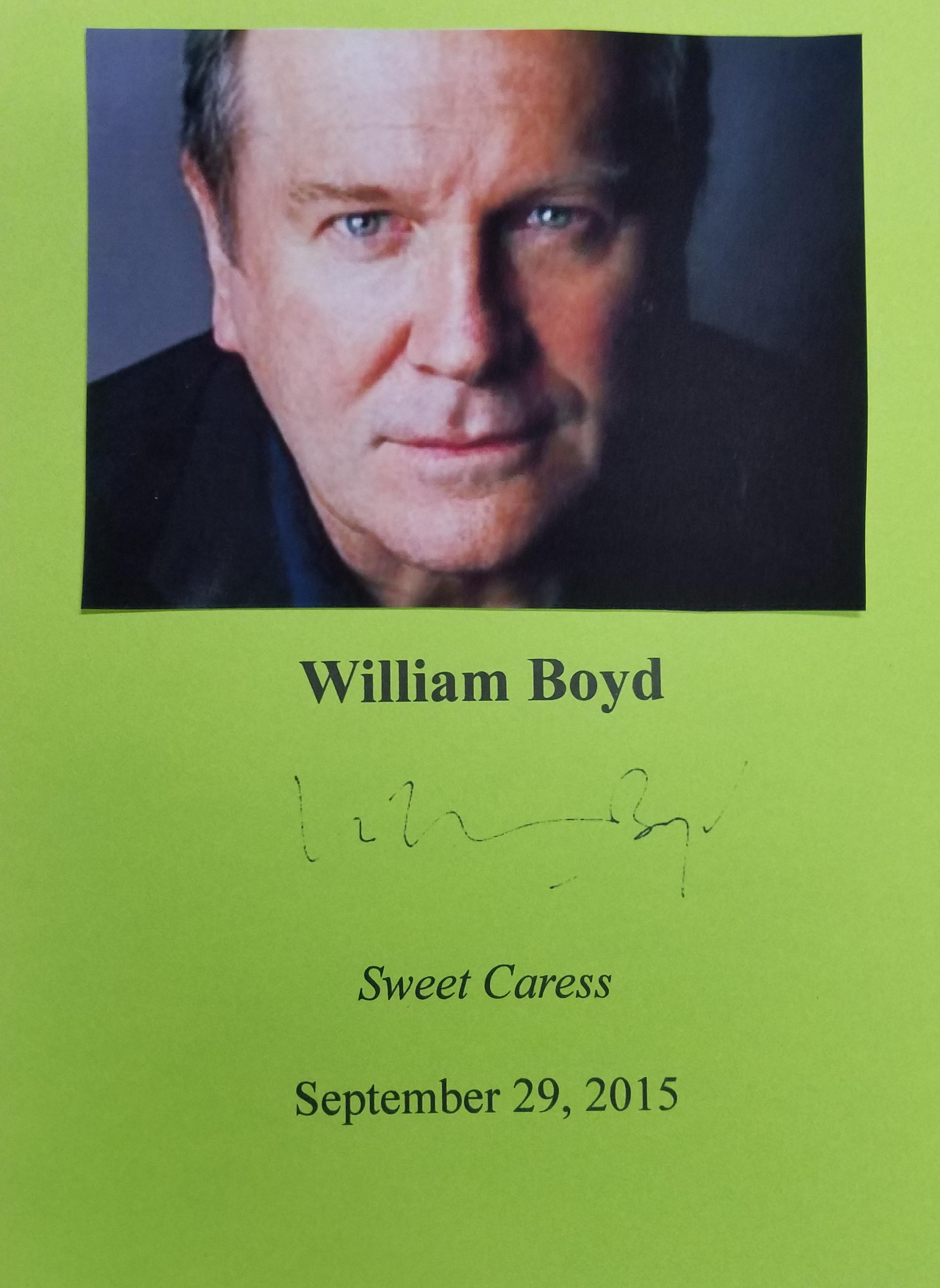 WILLIAM BOYD (pictured below from our Wall of Fame) has won the Whitebread Award, the Somerset Maugham Award, among others, and was short listed for the Booker Prize. He's written fifteen books and is considered one of the finest writers of the English language. He lives in London and France. Thank you William Boyd for signing our books.