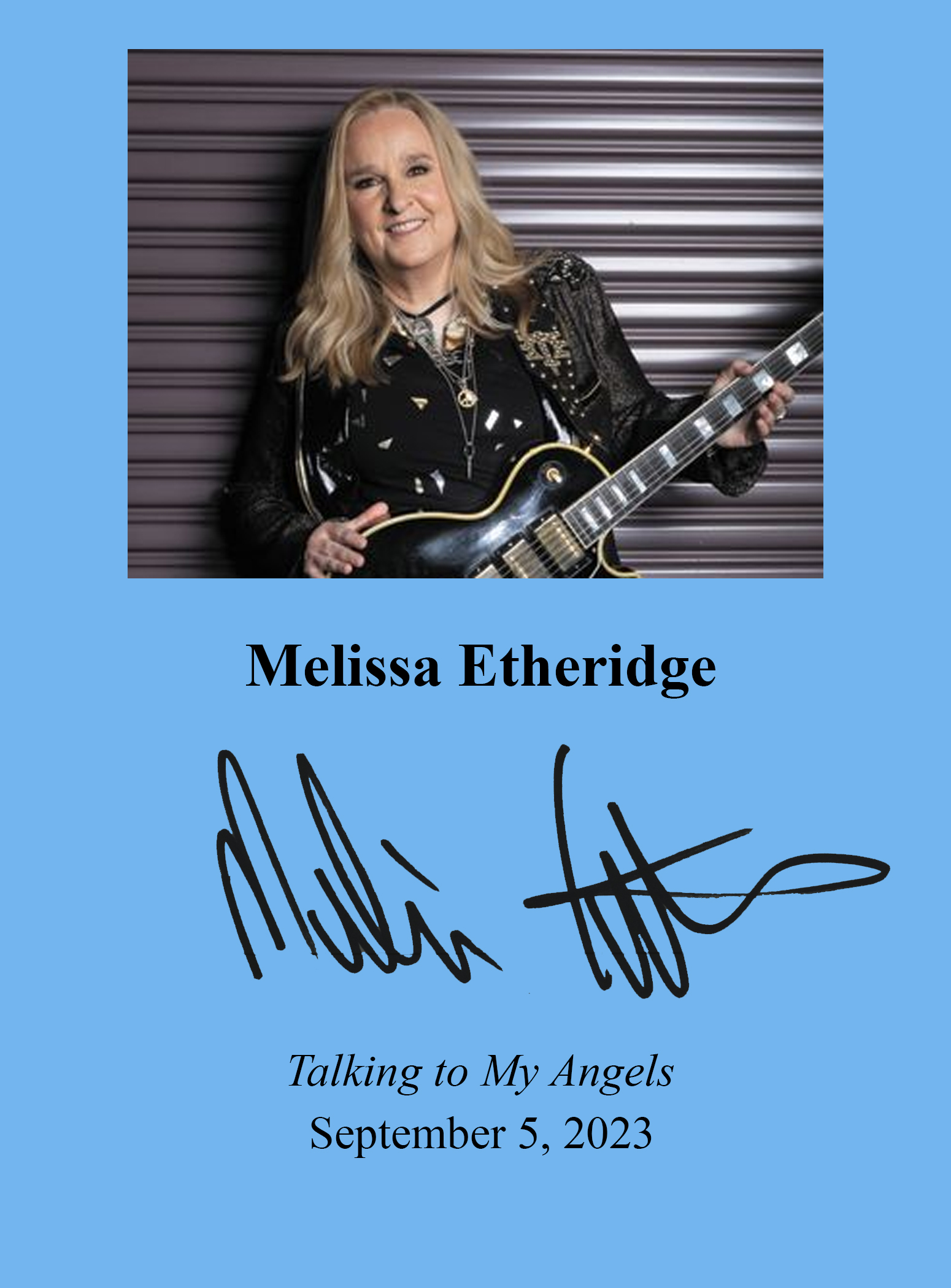 THIS COPY (shown below) was hand signed by Melissa Ethridge on a page bound into the book. It is a new, unread, unopened first edition and comes with a certificate authenticating the signature. Published in September, 2023 by Harper Wave, an imprint of Harpercollins Publishers.