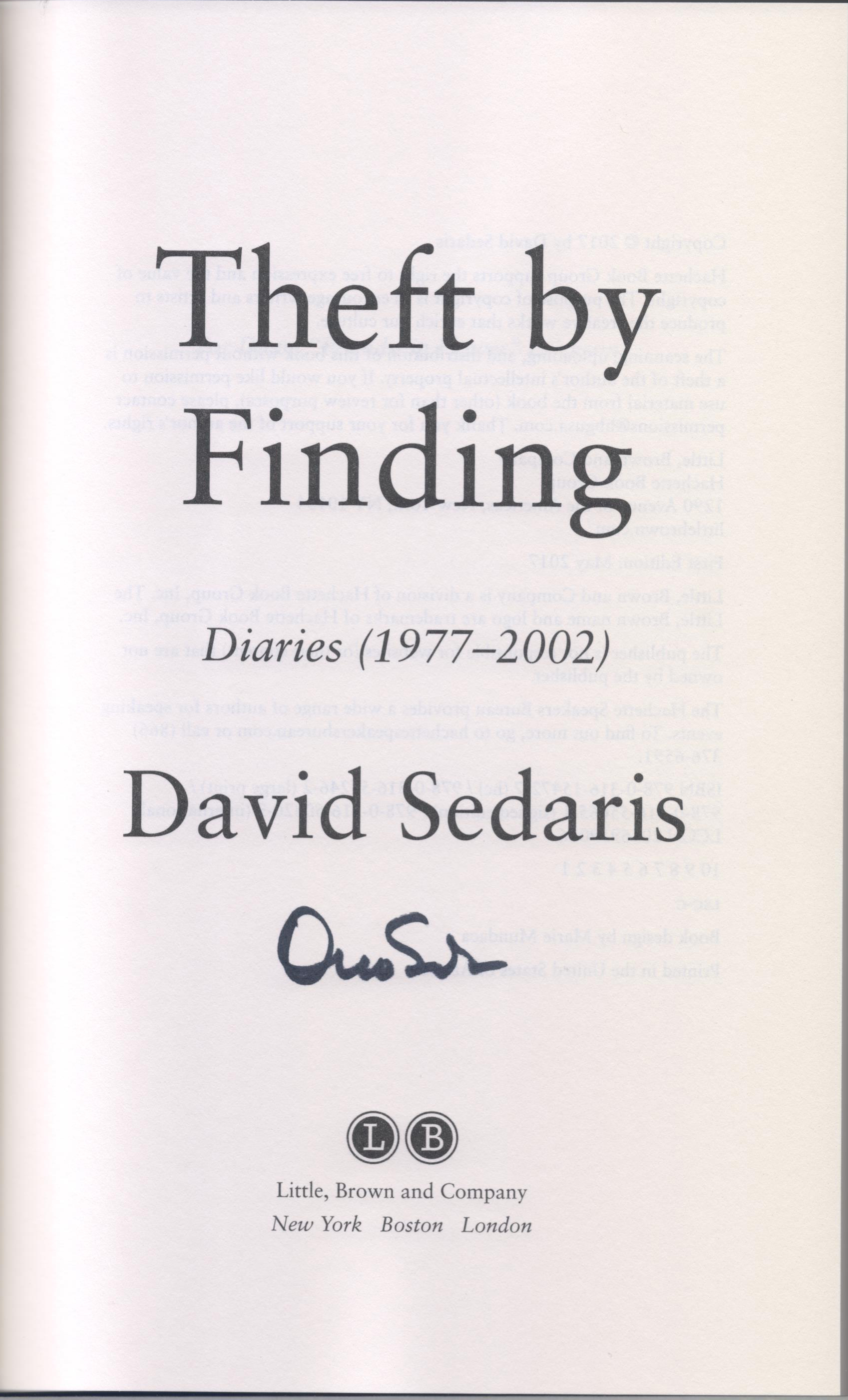 THIS COPY (shown below) was hand signed on the title page by David Sedaris at the store. It is a new, unread first edition opened only for signing and comes with a certificate authenticating the signature. Published in May, 2017 by Little, Brown, an imprint of the Hachette Book Group.