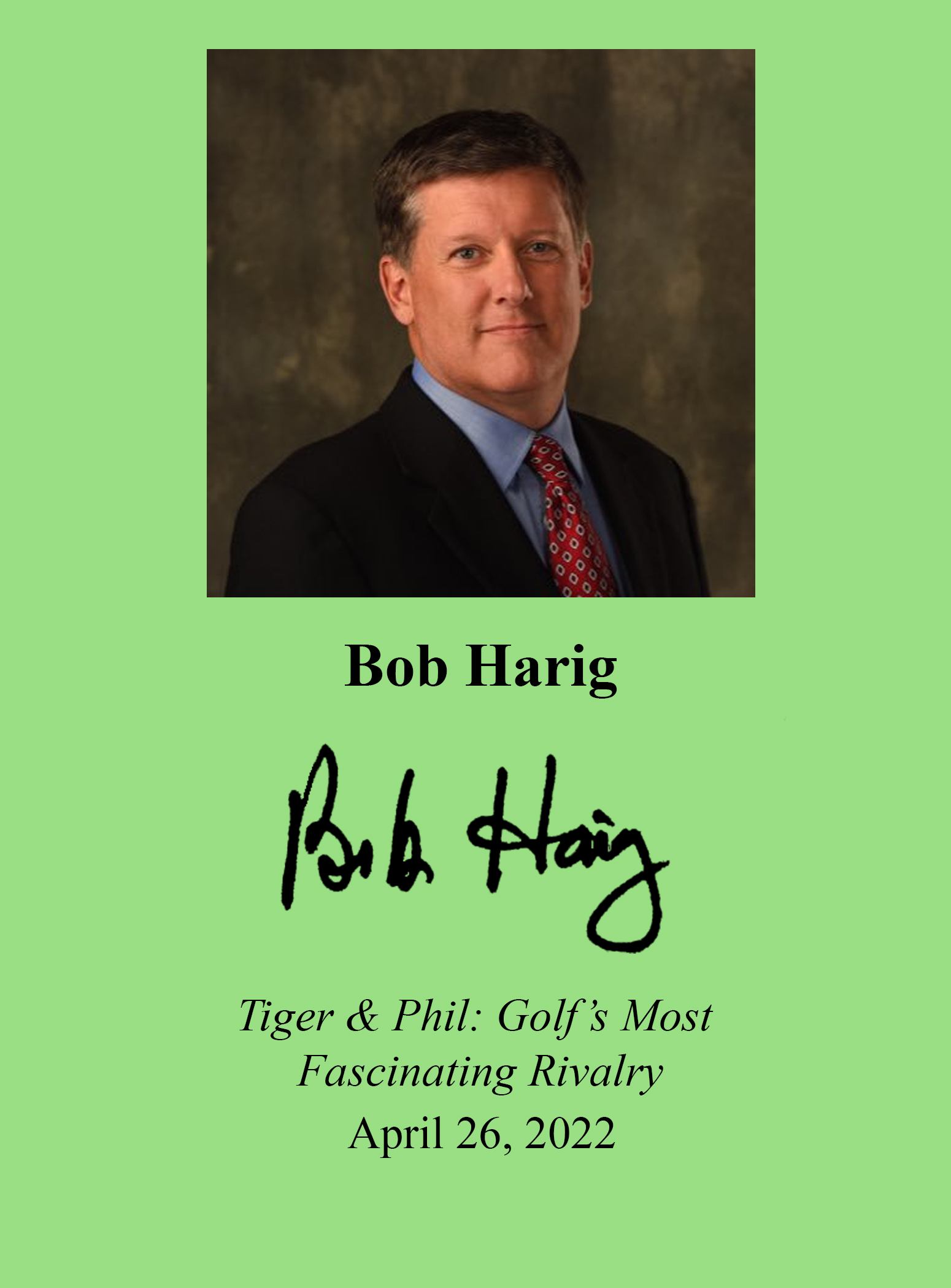 BOB HARIG (pictured below on our Wall of Fame) is a senior writer for Sports Illustrated and ESPN. Thank you Bob Harig for signing our books.