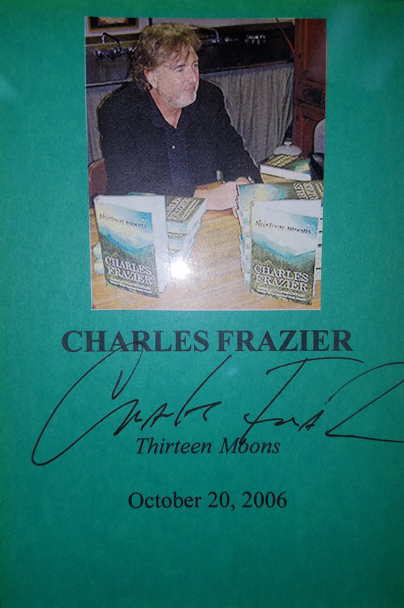 CHARLES FRAZIER (pictured below from our Wall of Fame) won the National Book Award for Cold Mountain, which was made into the movie of the same name. He is a New York Times best seller and owns many other writing awards. Thank you Charles Frazier for signing our books.