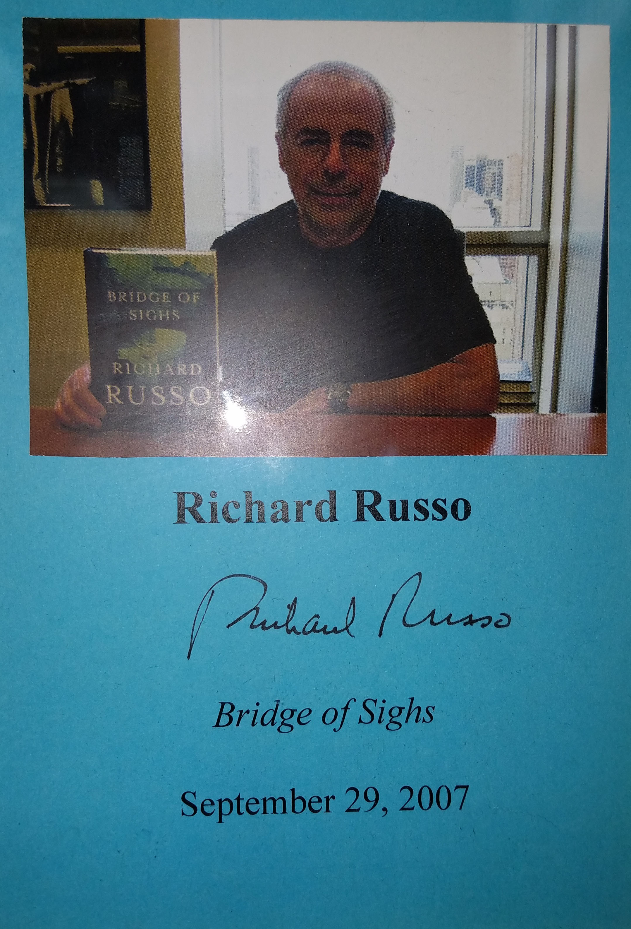 RICHARD RUSSO (pictured below from our Wall of Fame) is one of America's most successful and entertaining writers. He is an international best-seller and among his many awards is the Pulitzer Prize. Eight of his novels have been adapted for the movies or television shows.Thank you Richard Russo for signing our books.