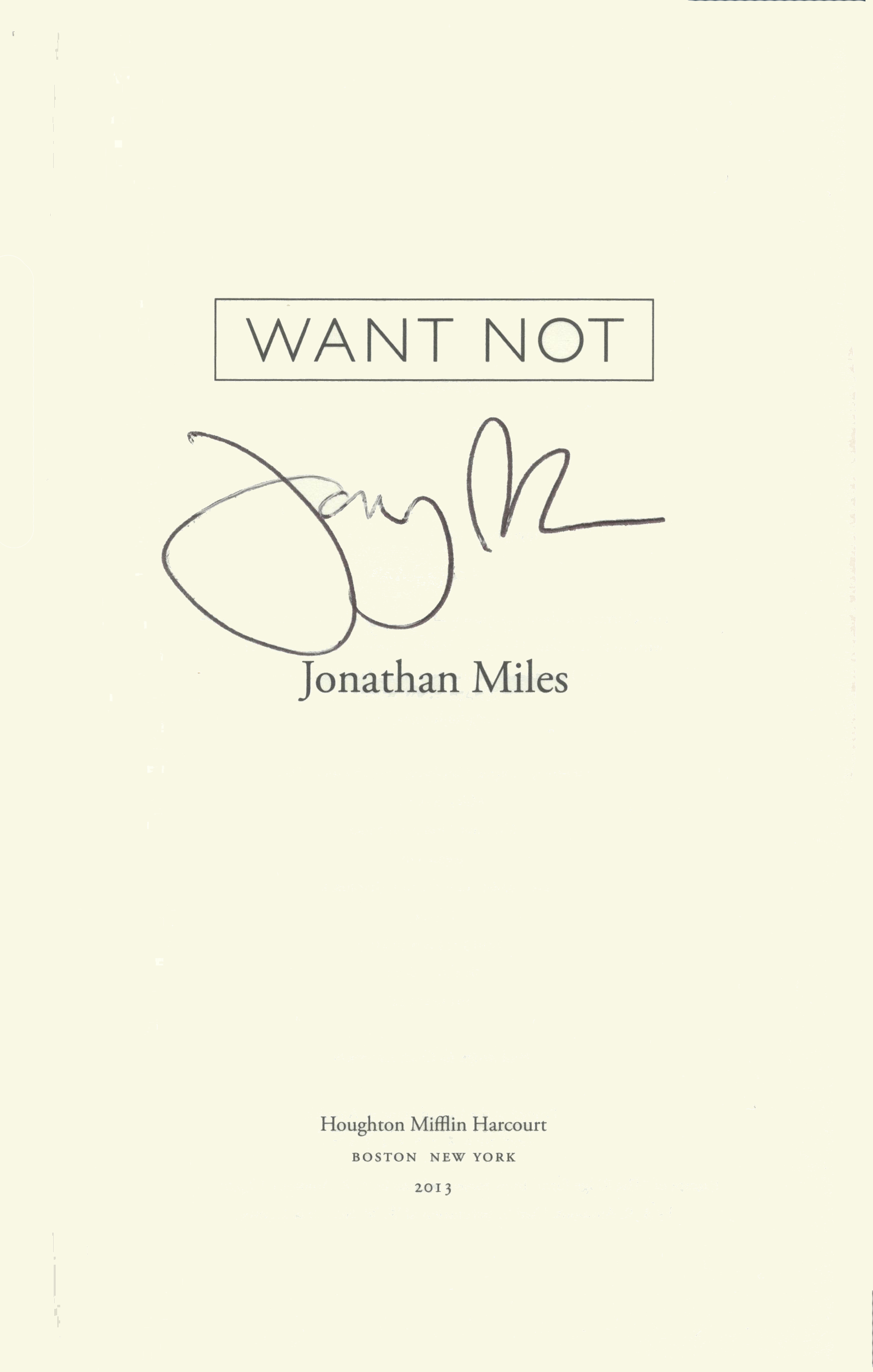 THIS COPY (shown below) was hand signed on the title page by Jonathan Miles at the store. It is a new, unread first edition opened only for signing and comes with a certificate authenticating the signature. Published in November, 2013 by Houghton Mifflin.