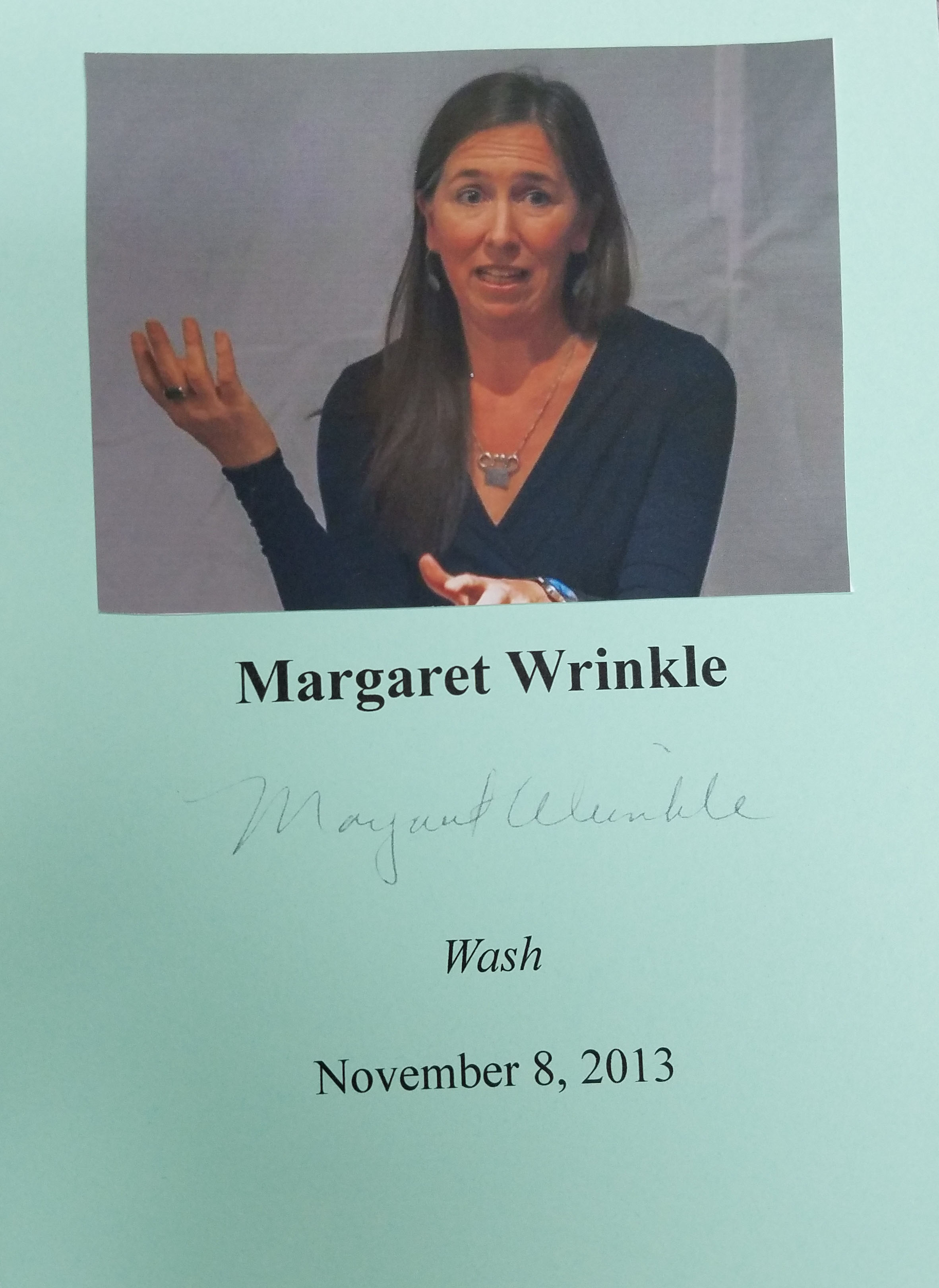MARGARET WRINKLE (pictured below from our Wall of Fame) is a Homegirl who has won national awards for her fiction and her filmmaking. Thank you Margaret Wrinkle for signing our books.