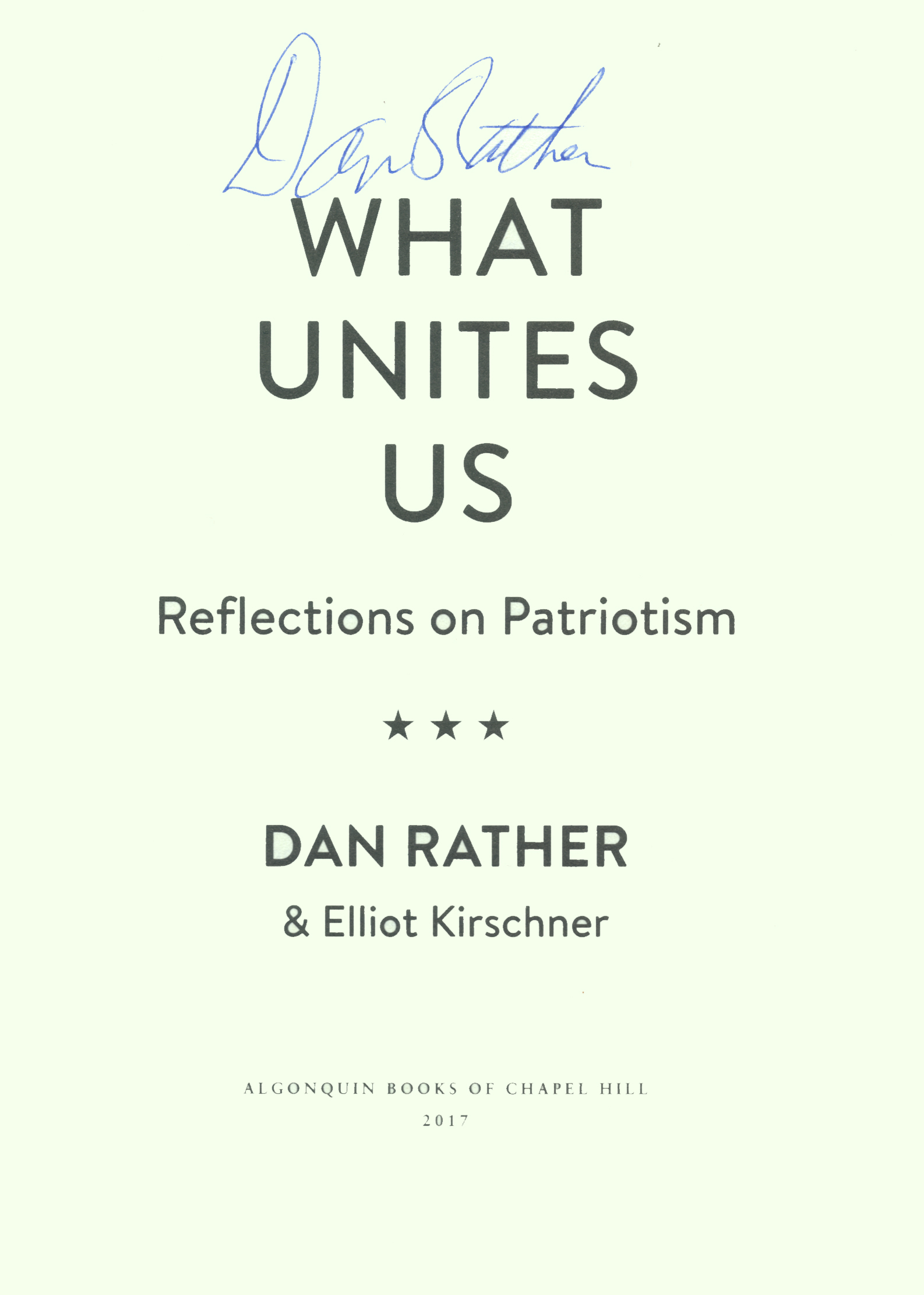 THIS COPY (shown below) was hand signed on the title page by Dan Rather at his office. It is a new, unread hardback opened only for signing and comes with a certificate authenticating the signature. Published in October, 2017 by Algonquin Books, an imprint of Hachett Book Group.