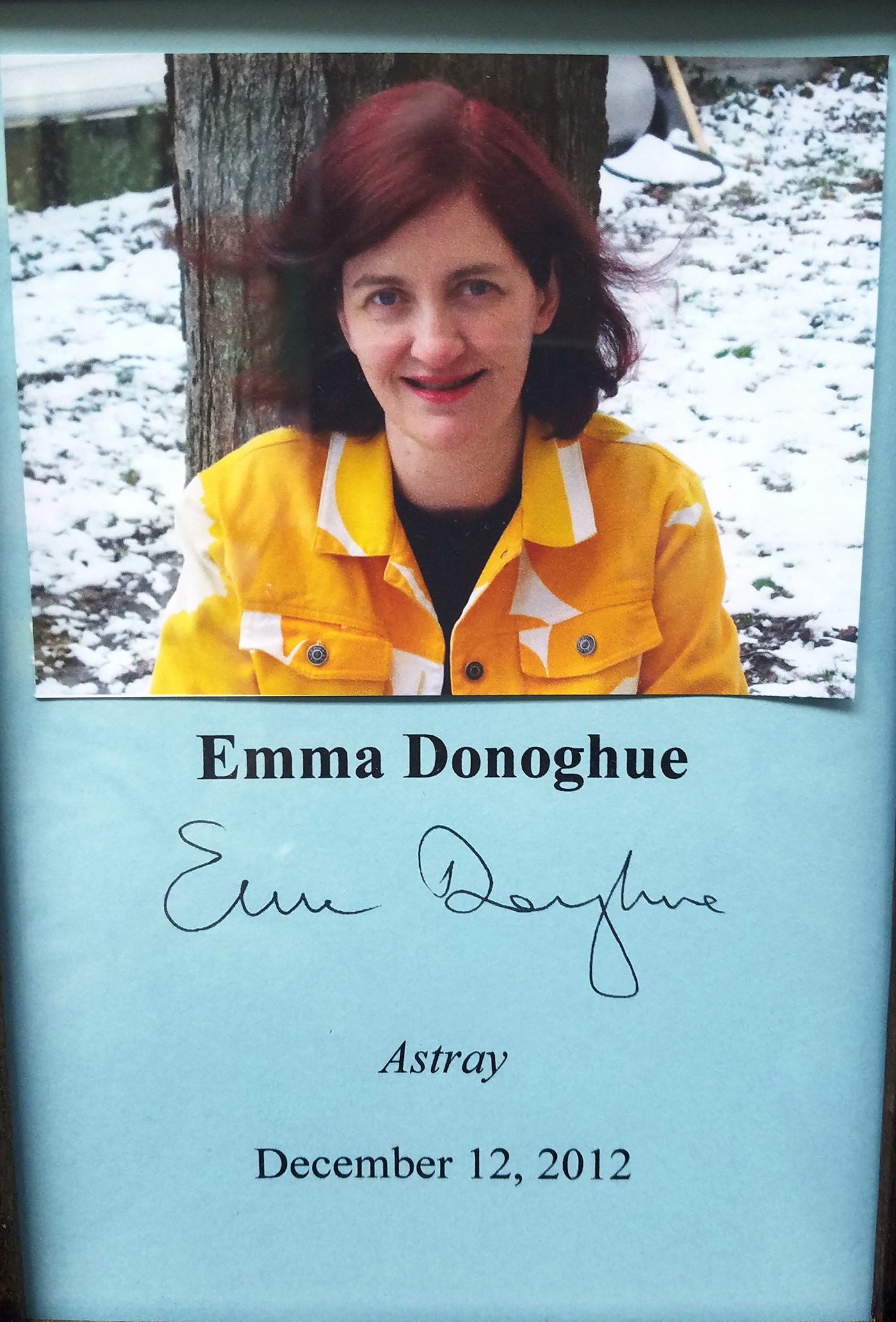EMMA DONOGHUE (pictured below from our Wall of Fame) is a singular force on the world writing stage. Her books have been translated into forty languages and she has won a boatload of writing awards in many countries. She writes fiction, YA, history and short stories. She is also an awarded screen writer. We were honored to have introduced her at our regional trade show dinner and found her as delightful on the stage as on the page. Thank you Emma Donoghue for signing our books.