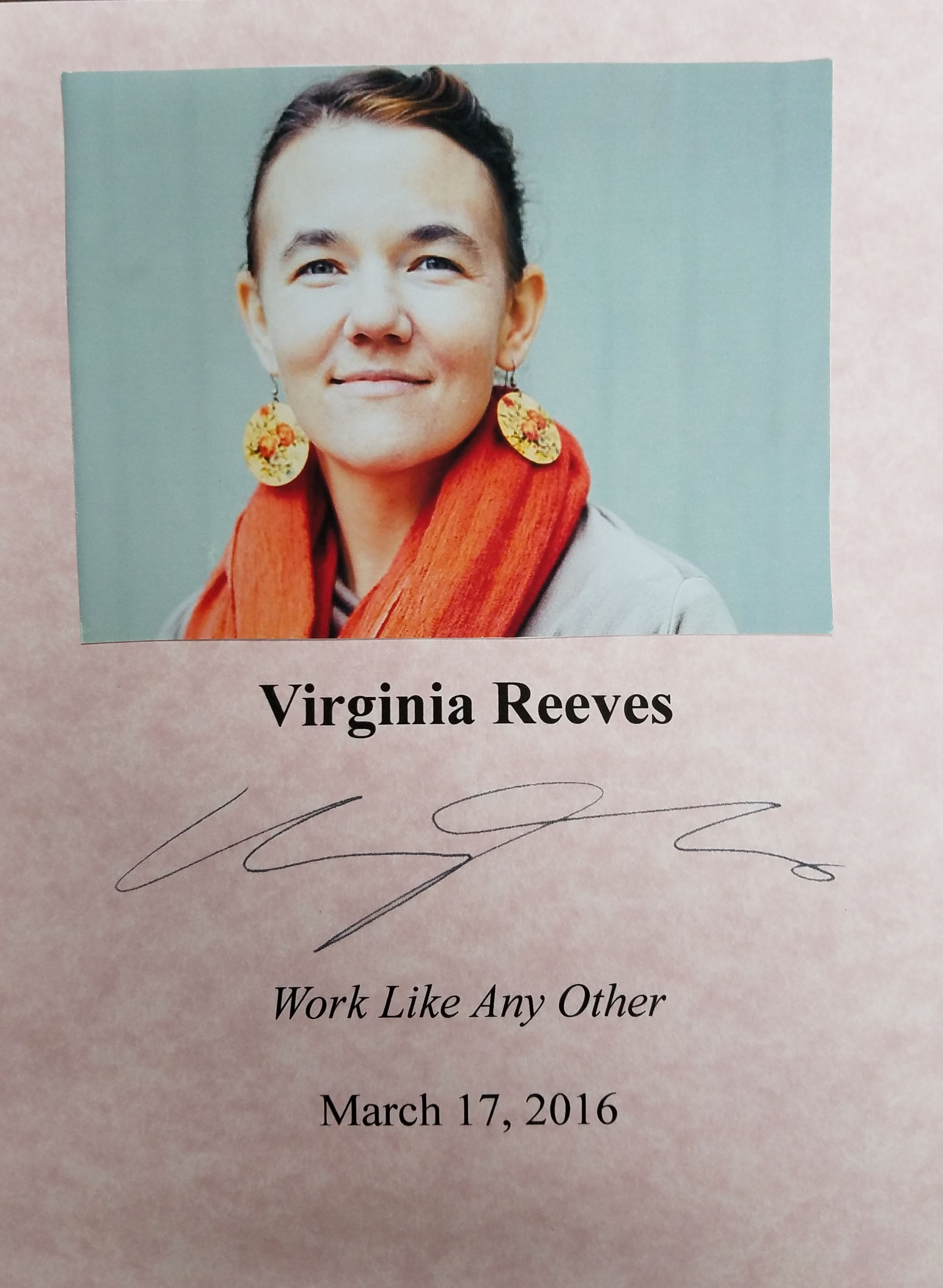 VIRGINIA REEVES (pictured below from our Wall of Fame) was short-listed for the Man Booker Prize. Work Like Any Other is her first book. Thank you Virginia Reeves for signing our books.